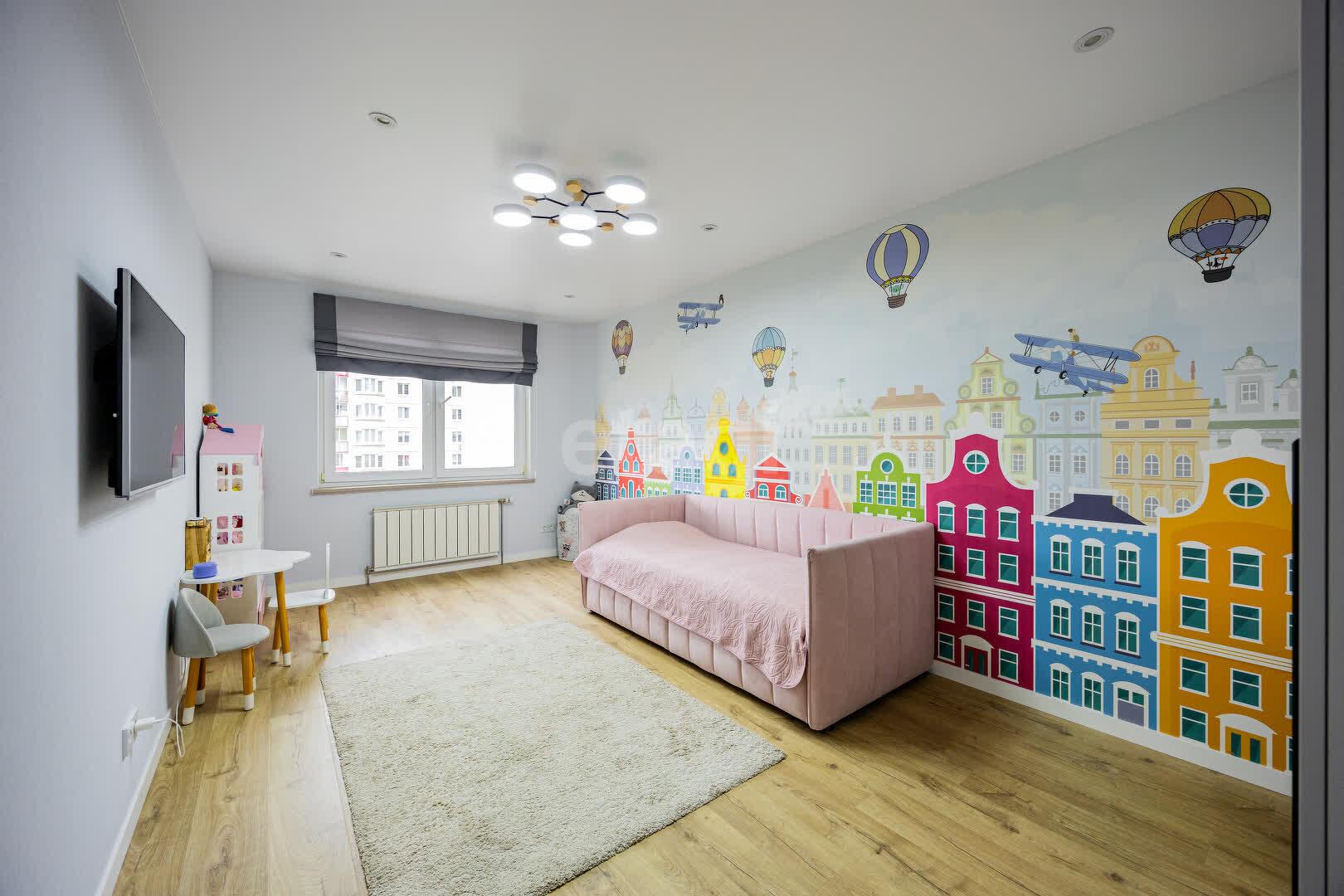 Гостинная 18 м.кв. с эркерным окном, что выгодно преображает её вид изнутри, делая комнату светлее и уютнее, открывая красивый панорамный вид. спальня 12.5 м.кв. с выходом на застеклённую лоджию, детская 17.2 м.кв., кухня 10.2 м.кв.