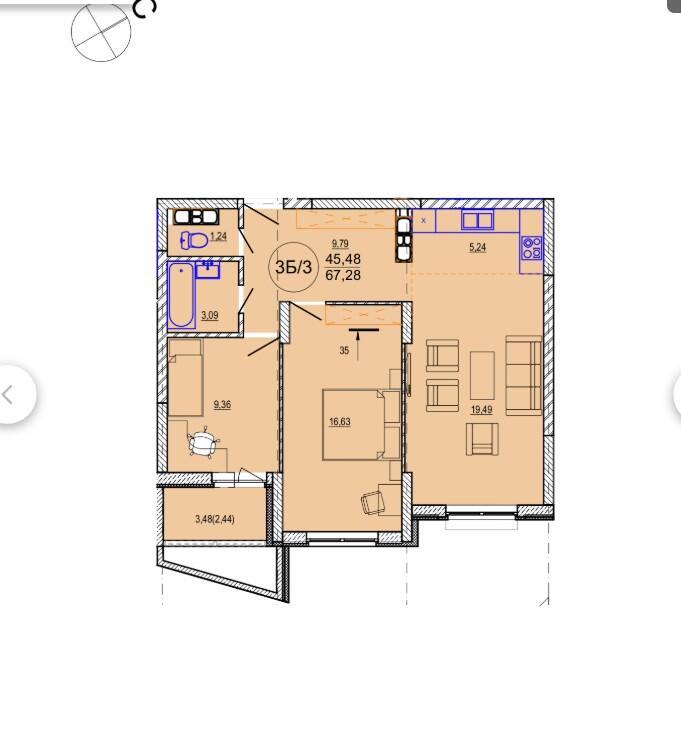 Площадь67.28 м2