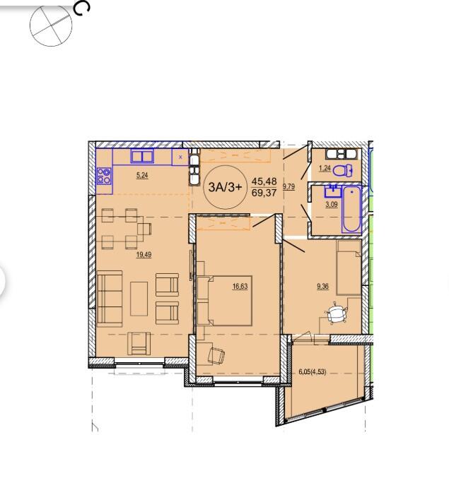 Общая площадь 69.37 м²