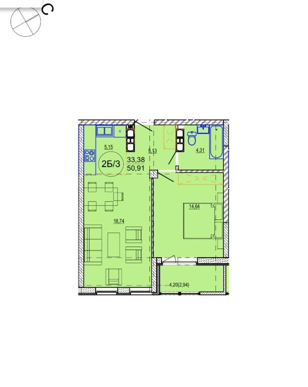 Общая площадь 50.91 м²