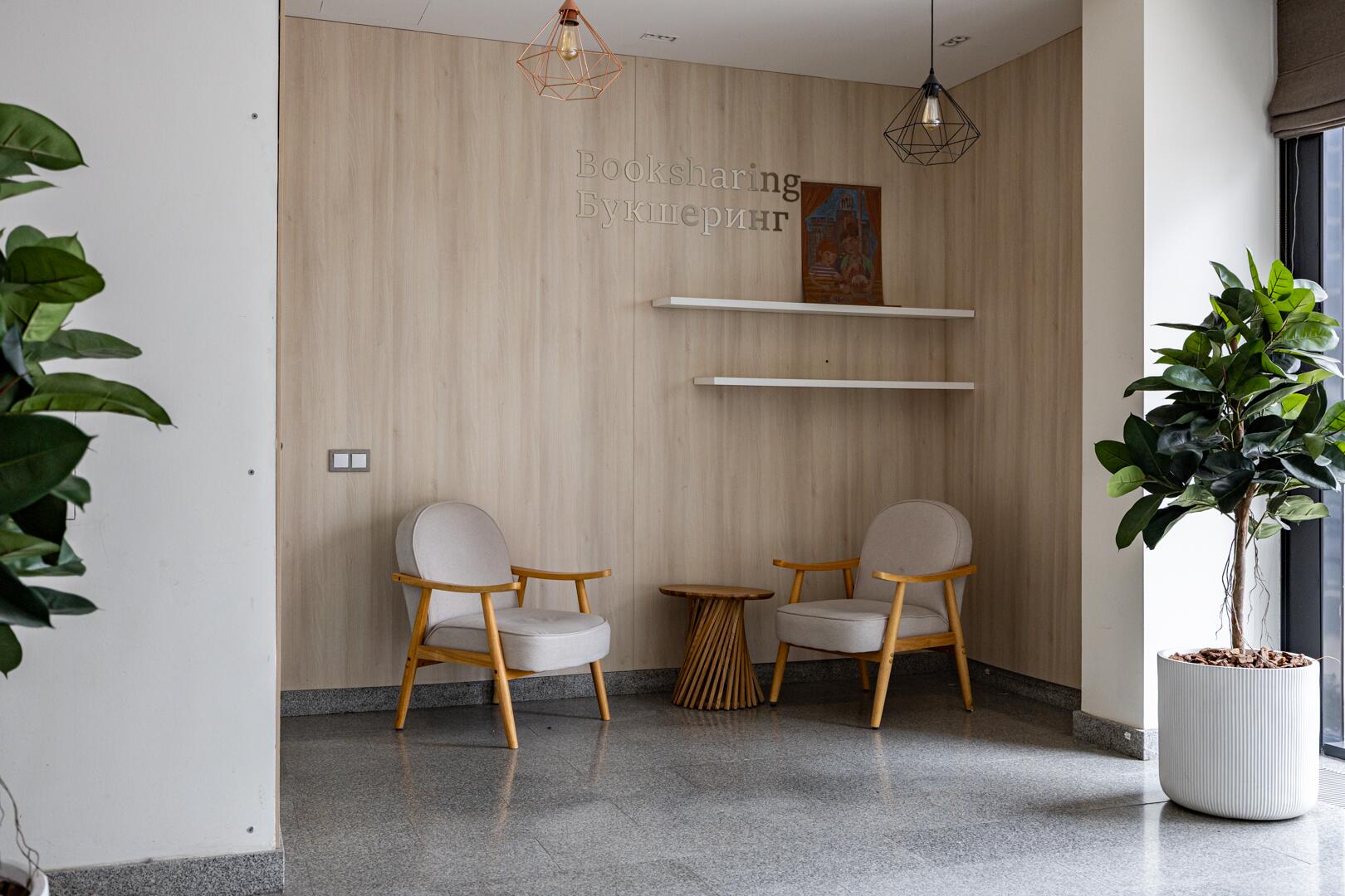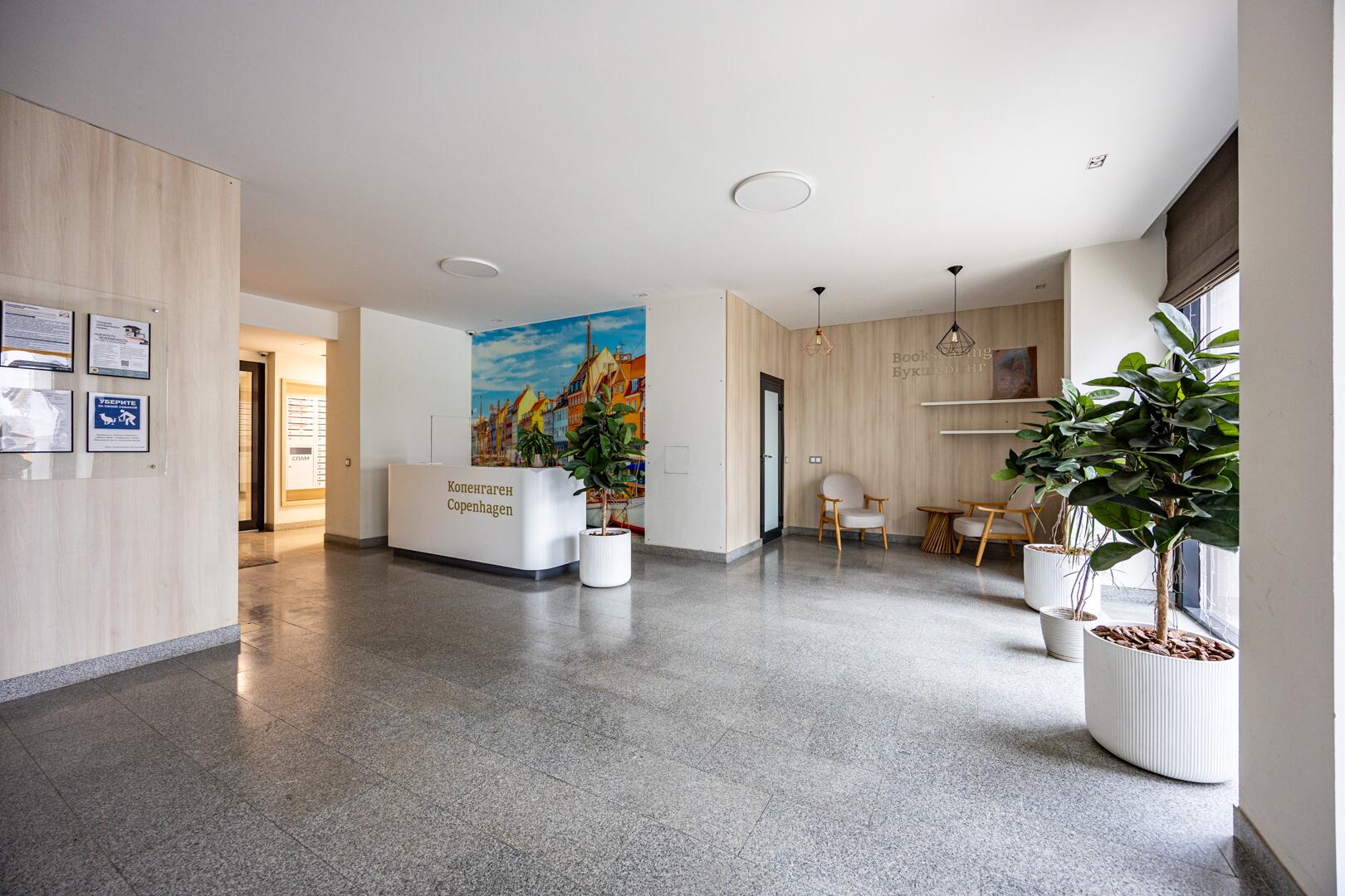 Лобби с местом для консьержа, зоной отдыха