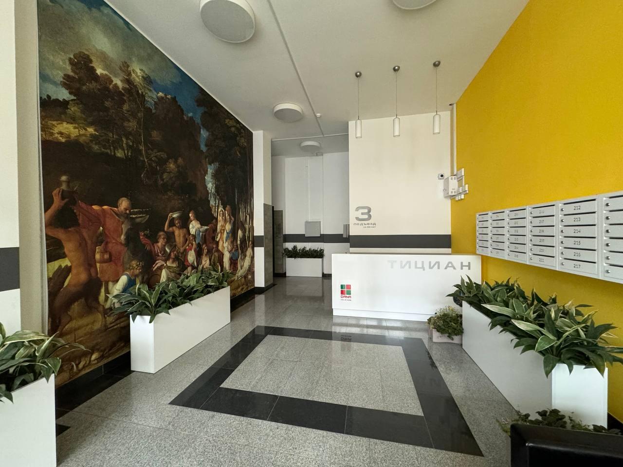 - На входе консьерж и просторная гостевая зона.