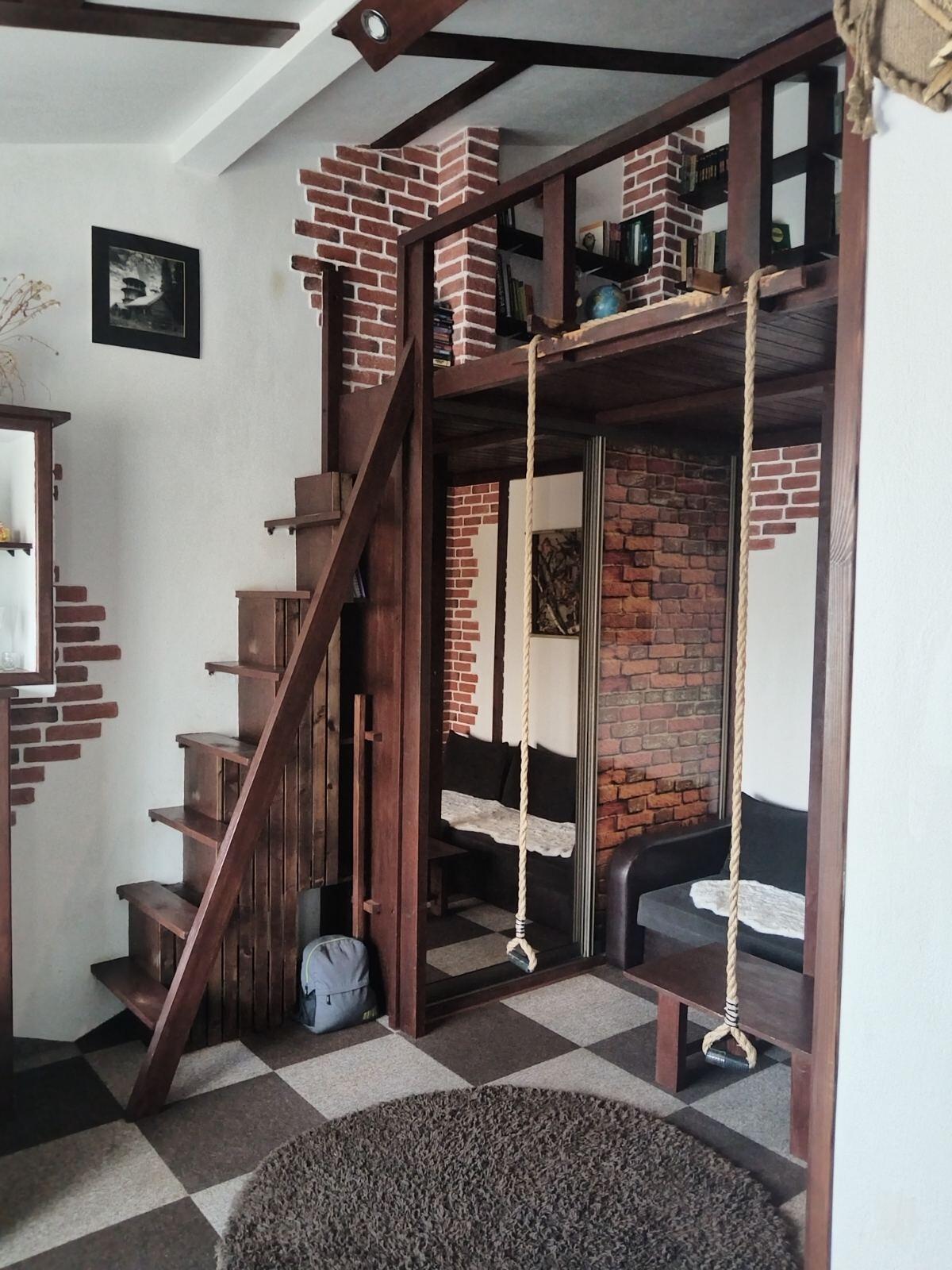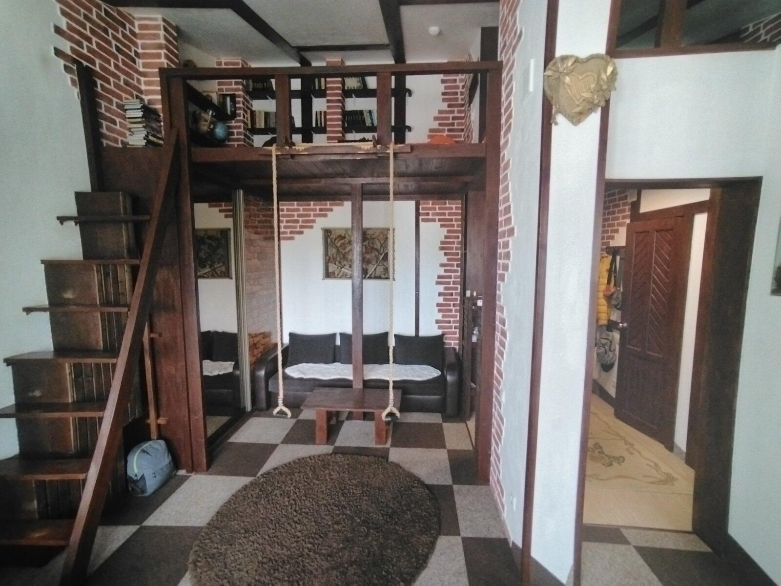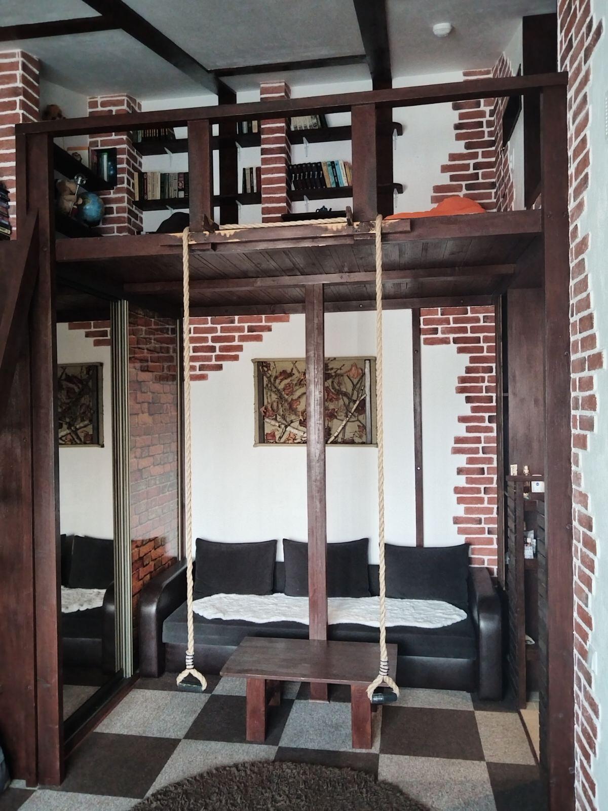 Квартира расположена на 4 мансардном этаже, в результате чего оборудован второй уровень, что увеличило жилую площадь более чем на 50 %.