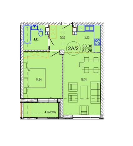 Общая площадь 51.25 м²