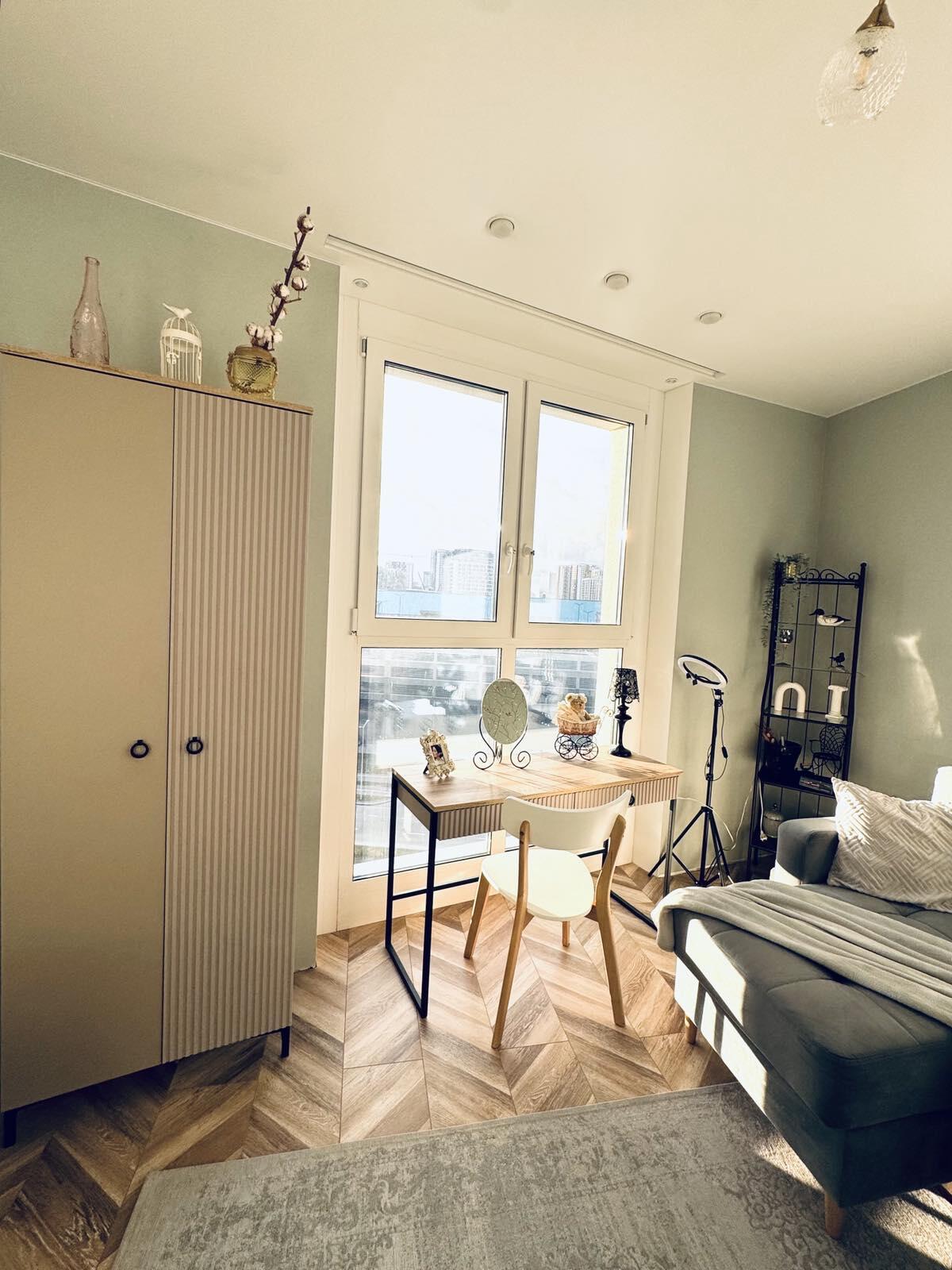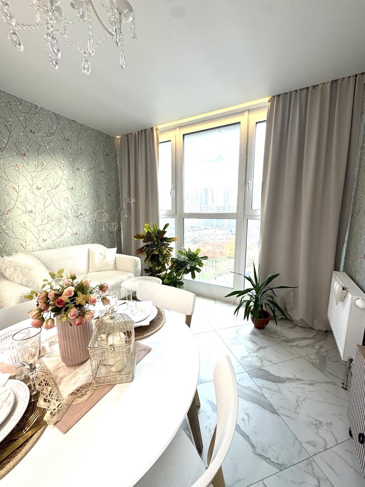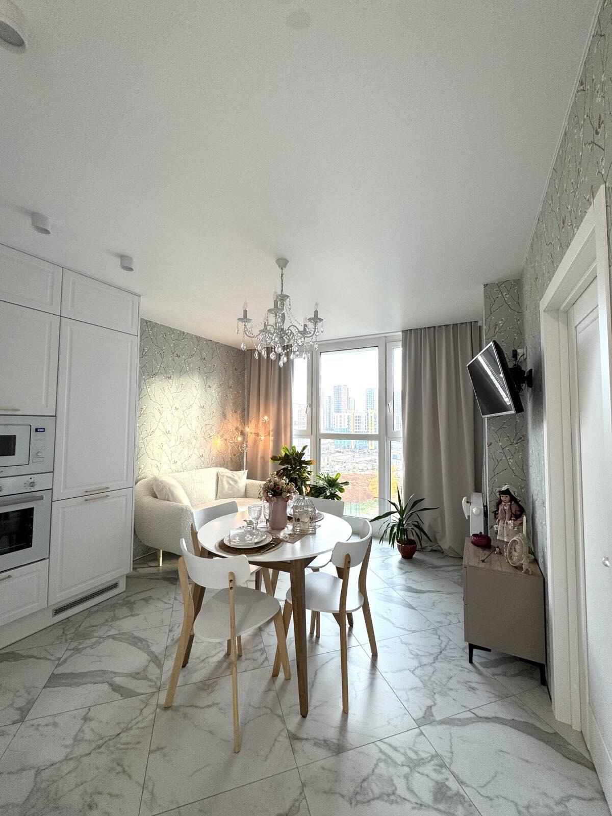 Продается стильная, солнечная евротрешка в самом сердце ЖК "Минск Мир"В квартире выполнен дизайнерский ремонт в английском стиле из качественных материалов. Панорамные окна кухни-гостиной смотрят во двор на южную сторону и поэтому уже в обеденное время залита солнечным светом. Эргономичная кухня оборудована всей встроенной техникой для самых требовательных хозяек.В квартире есть уютная спальня оборудованная местами для хранения, и вторая спальня, которая может быть как детской так и уютным кабинетом.В этой квартире необходимо побывать для того, чтобы понять, что она является отражением Вашей стильной, комфортной жизни.Рядом с домом:- ТЦ "Авиа Молл"- станция метро "Аэродромная"- остановка общественного транспорта- кафе, парикмахерские, офисы Валдберис, Озон и другие части урбанистики и комфортной жизни.