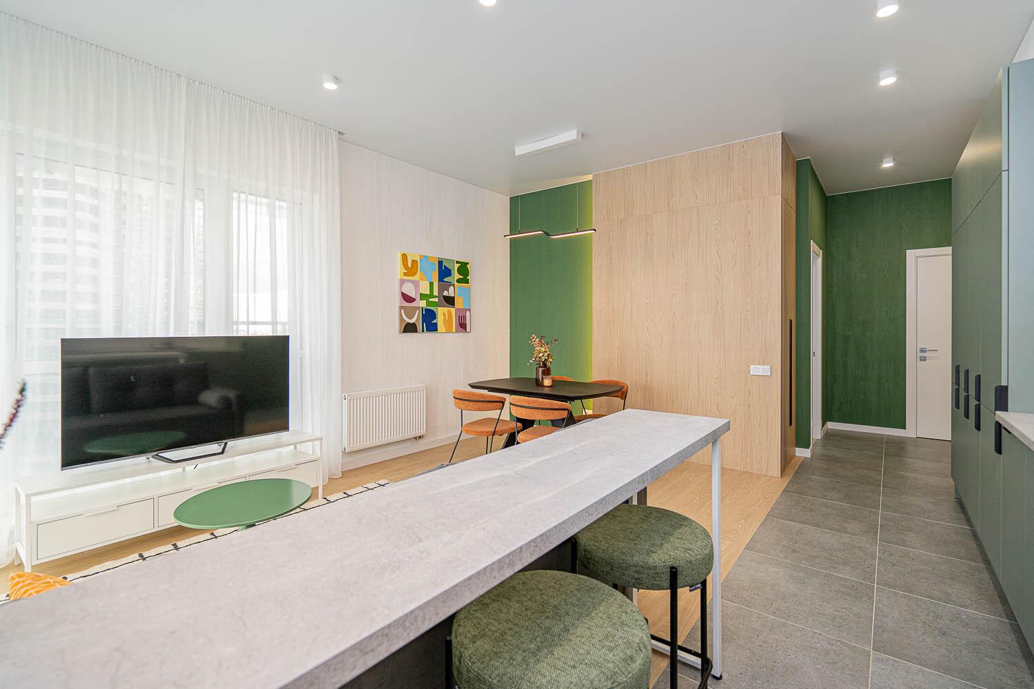 две раздельные и не граничащие друг с другом комнаты; удобная кухня-гостиная с выходом на просторный балкон;