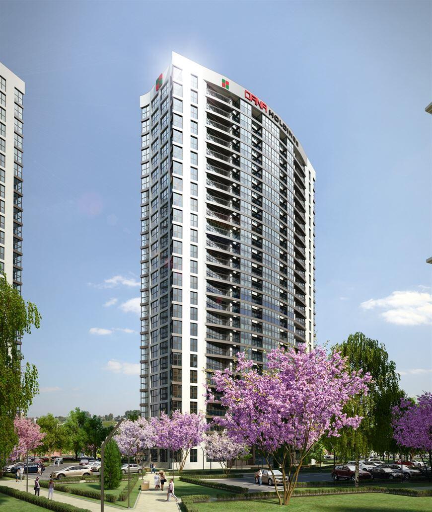 Зеленая парковая зона, международный финансовый центр и крупнейший торговый центр Авиа Молл в центре комплекса.