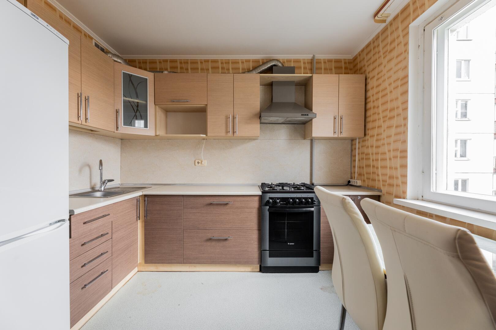 Комната отдельно, кухня 9 м2. С/у раздельный, в ванной и туалете плитка. Полы: ламинат в комнате, линолеум в кухне и коридоре. Состояние с минимальными вложениями: можно заехать сейчас, косметику - по желанию.