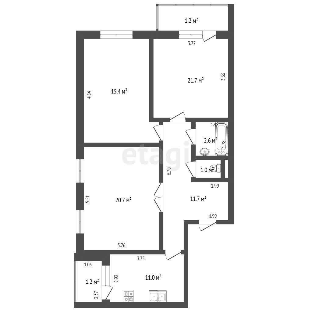 Три изолированные комнаты: 15,4 / 20,7 и 21,7 м2