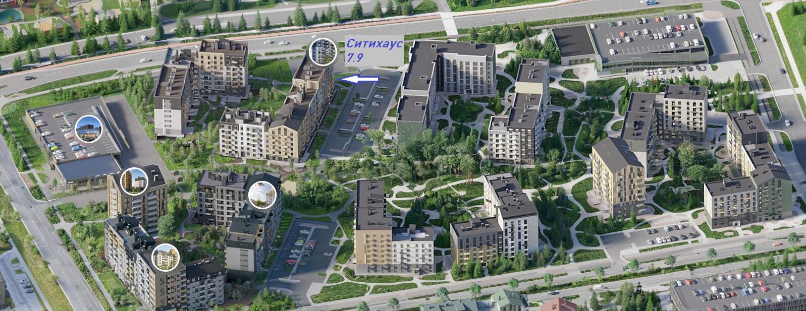 Ситихаус 7.9 в квартале Земляничная поляна – монолитный 4-подъездный дом в окружении лесных скверов, песчаных пляжей и земляничных холмов.