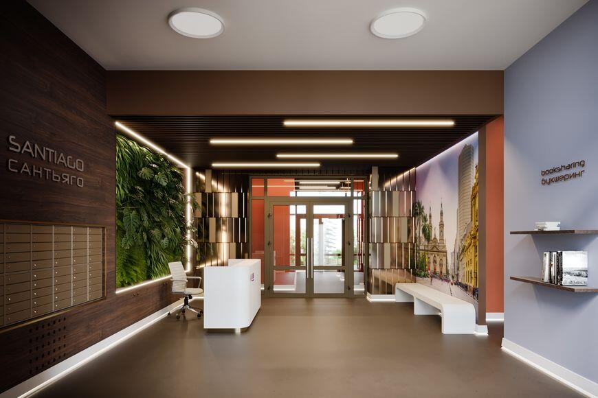 Во всех домах просторные фойе с высокими потолками, гостевыми санузлами и стойками для консьержа