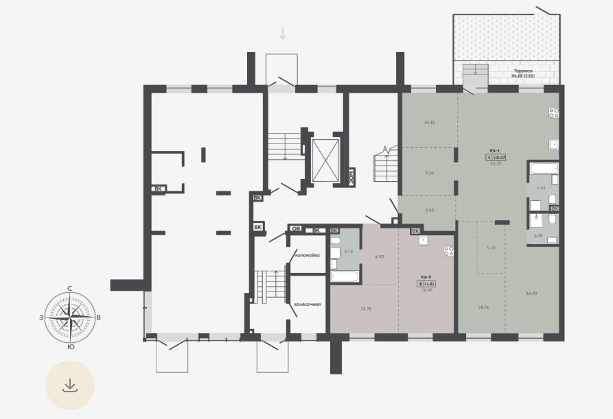 В лобби предусмотрены помещения для мытья лап домашних животных, колясочные. Сквозной подъезд.