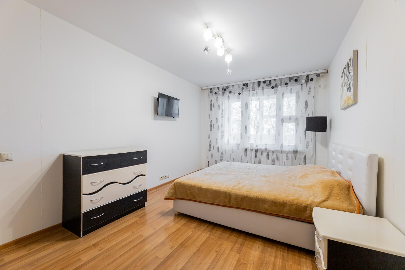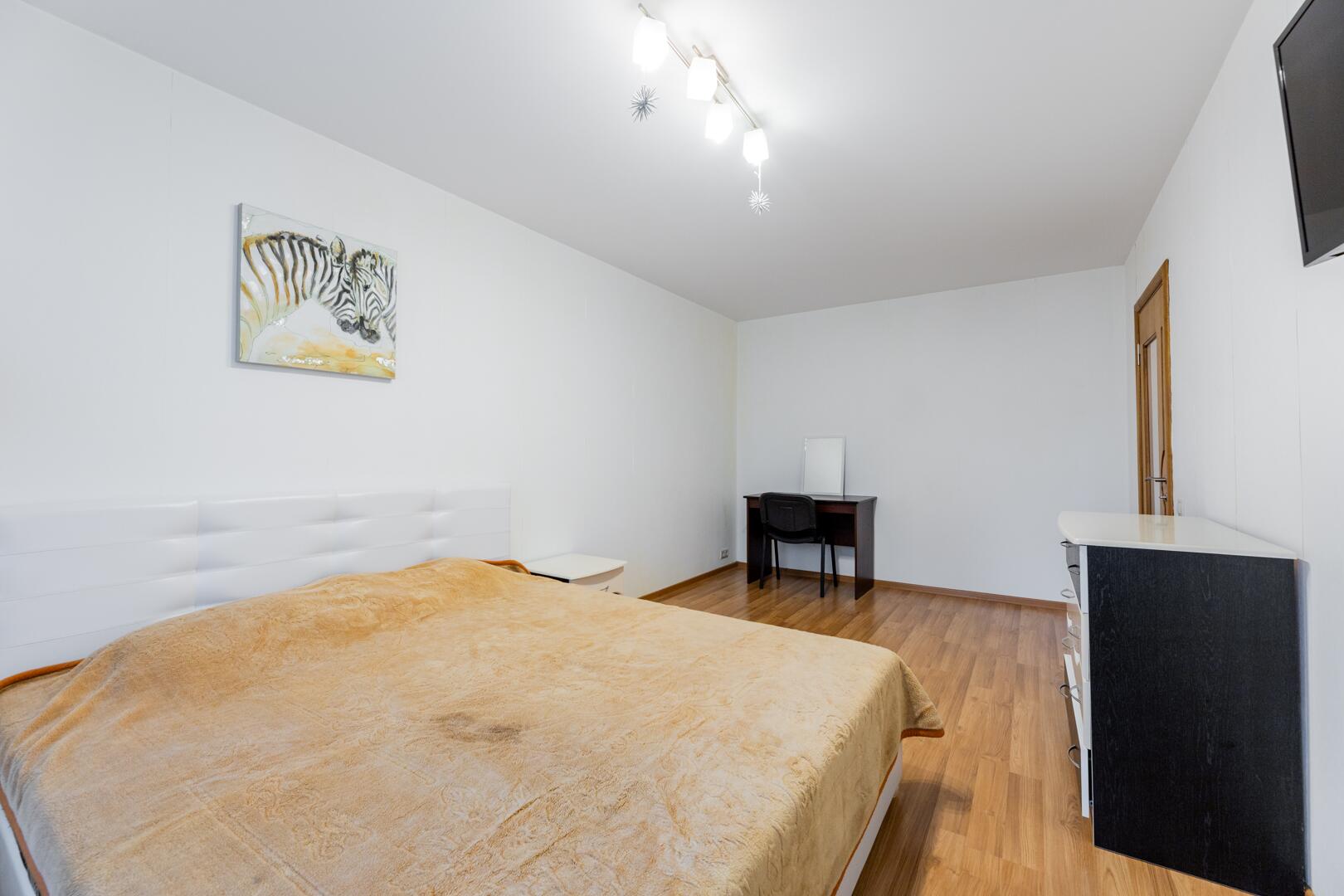· Просторная спальня – 17 м.кв. Двуспальная кровать, комод, прикроватная тумба, письменный стол, TV.