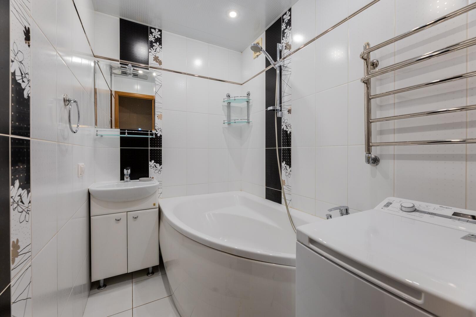 · Ванная комната облицована плиткой, оборудована качественной сантехникой и смесителями.