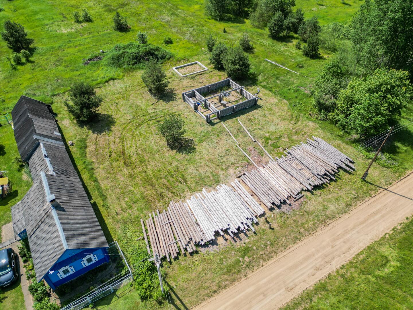 На участке уже есть фундамент под баню и законсервированное незавершенное строительство дома площадью 90 квадратных метров из сруба.