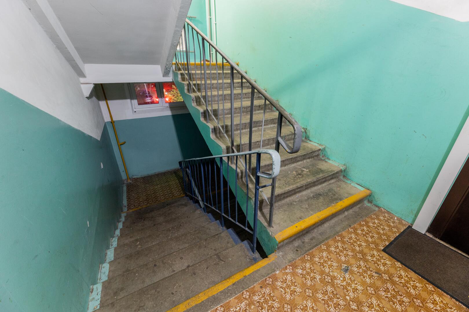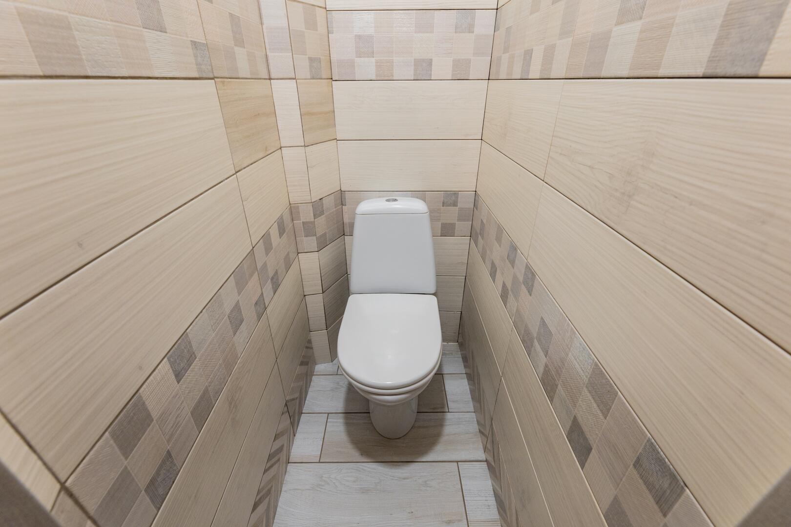 В коридоре, санузле и на кухне — плитка, в комнатах — ламинат.