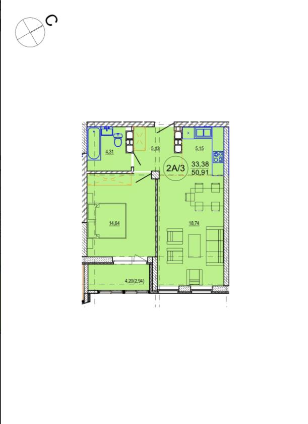 Общая площадь 50.91 м²