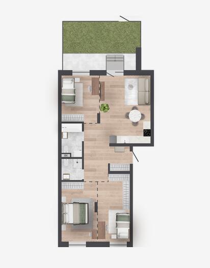 Благоустройство зеленого коридора в соседстве с другими ситихаусами – это большая зона для игр. Сохраненные деревья выступят естественным шумовым барьером для жителей близлежащих домов.