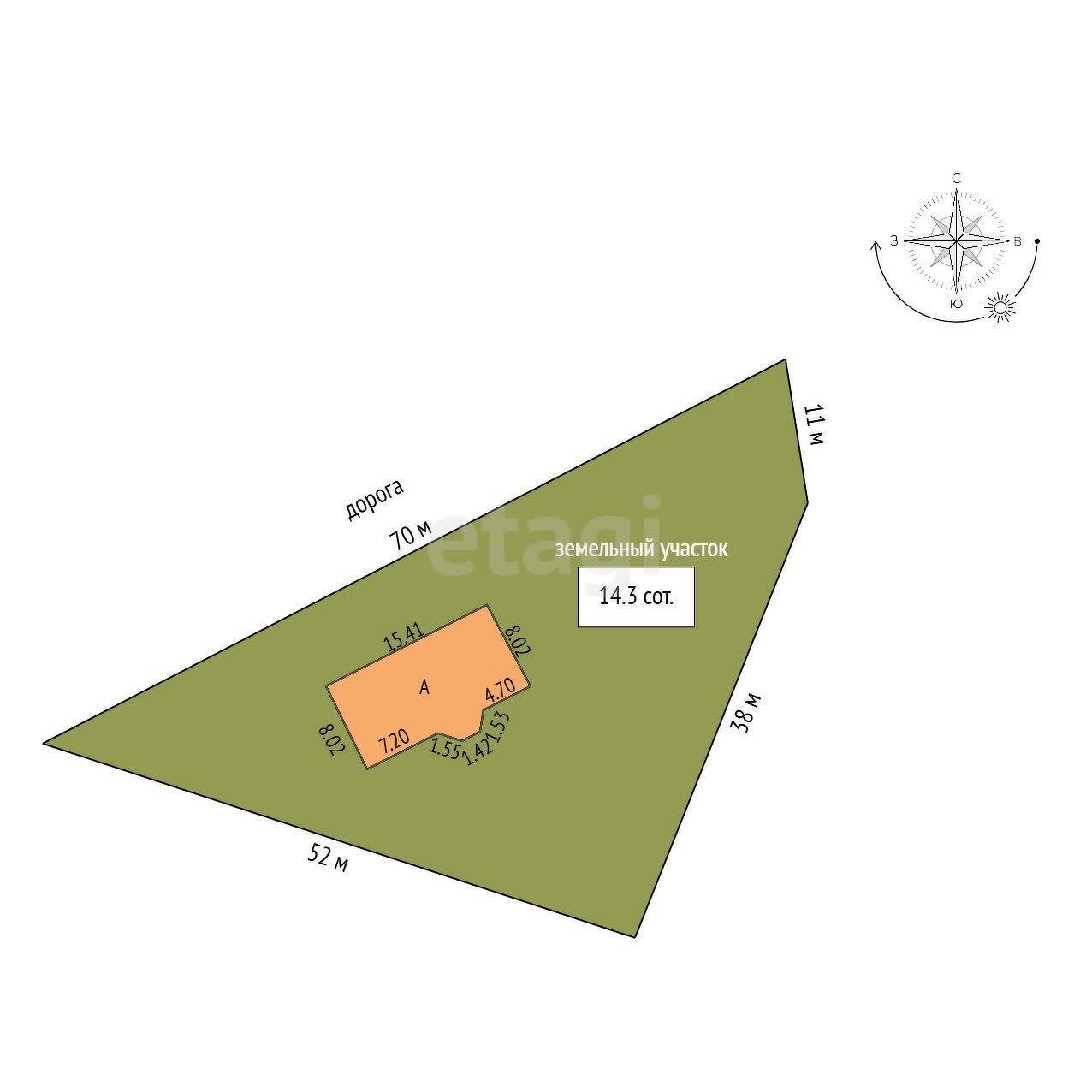 Участок 14,3 сотки — частная собственность. Ровная территория позволяет создать уютный двор с зоной отдыха, садом и местом для огорода.Удобное транспортное сообщение: автобусы и маршрутки ходят регулярно, остановка — рядом с домом.