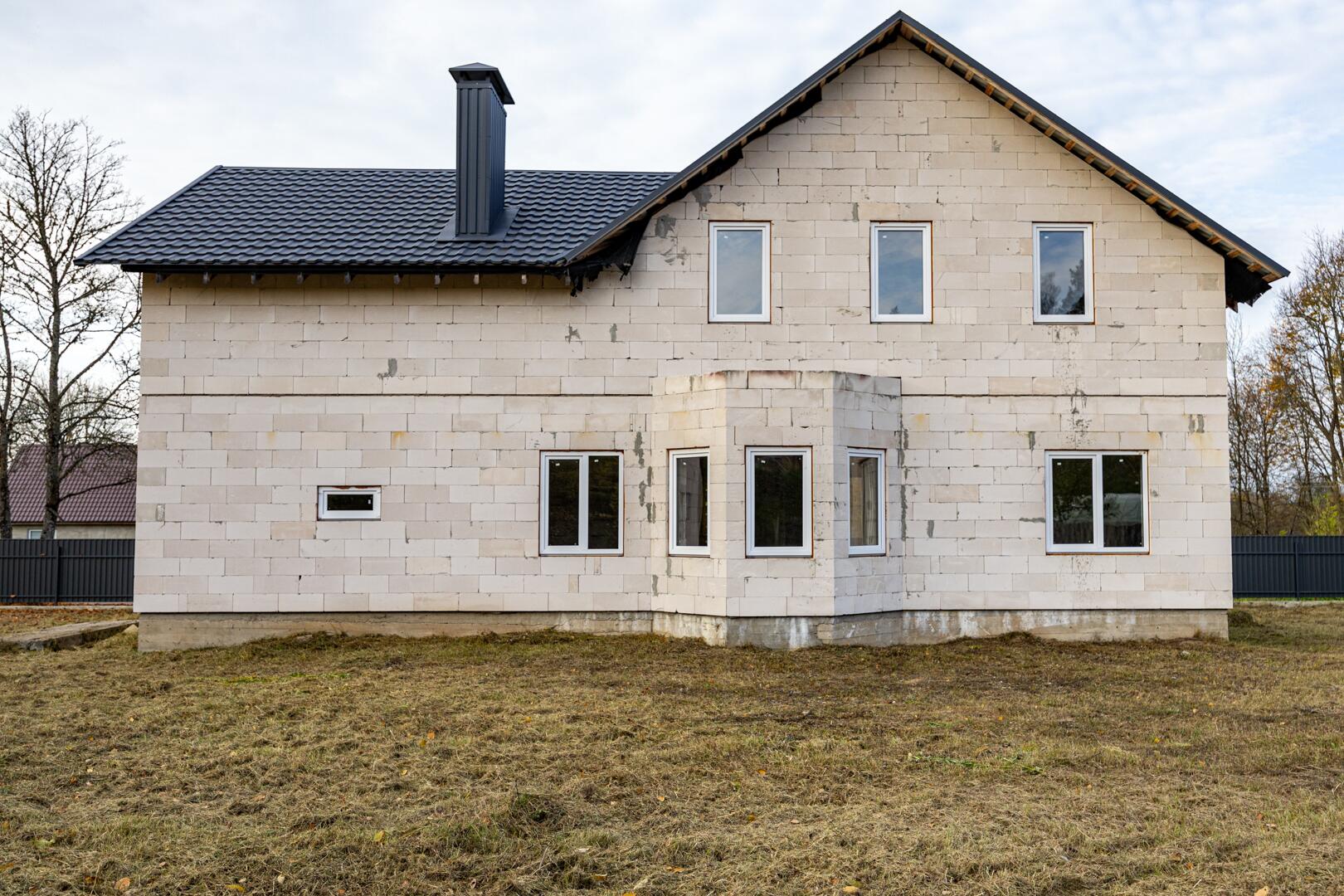Дом площадью 201,6 м2 готов на 80% и ждёт финальных штрихов под ваши идеи.Рациональный проект:– 1 этаж: кухня, гостиная, санузел, топочная, гараж, терраса;– 2 этаж: свободная планировка для создания комфортной спальной зоны и второго санузла.Надёжные материалы: газосиликатные блоки, железобетонные перекрытия, металлочерепичная крыша. В дом заведены вода, электричество и канализация, деревня газифицирована.