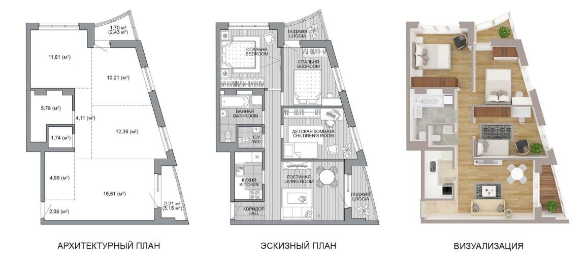 свободная планировка и отсутствие отделки дают вам возможность реализовать самые оригинальные дизайнерские идеи, создав уникальный интерьер.