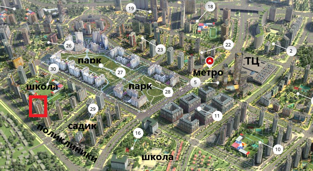 Все дома в комплексе каркасно-блочные, от 10 до 25 этажей.