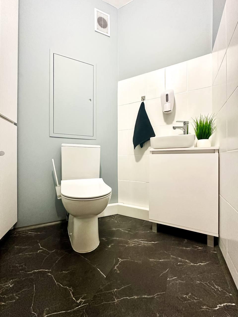 В санузле уложена плитка