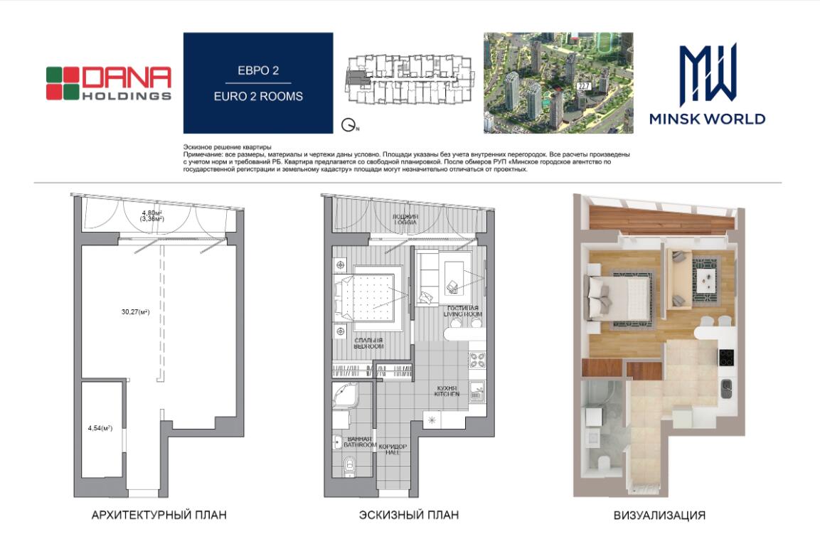 Квартира свободной планировки в строящемся доме «София», ЖК «Минск-Мир»