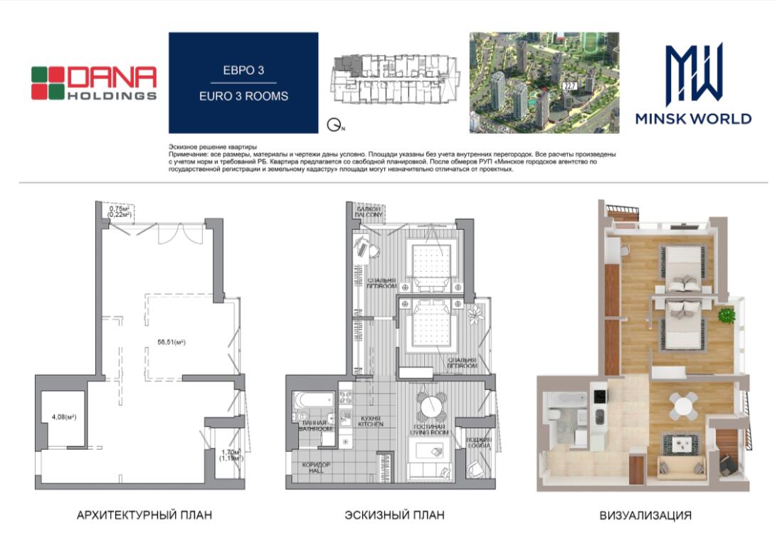 Квартира свободной планировки в строящемся доме «София», ЖК «Минск-Мир»