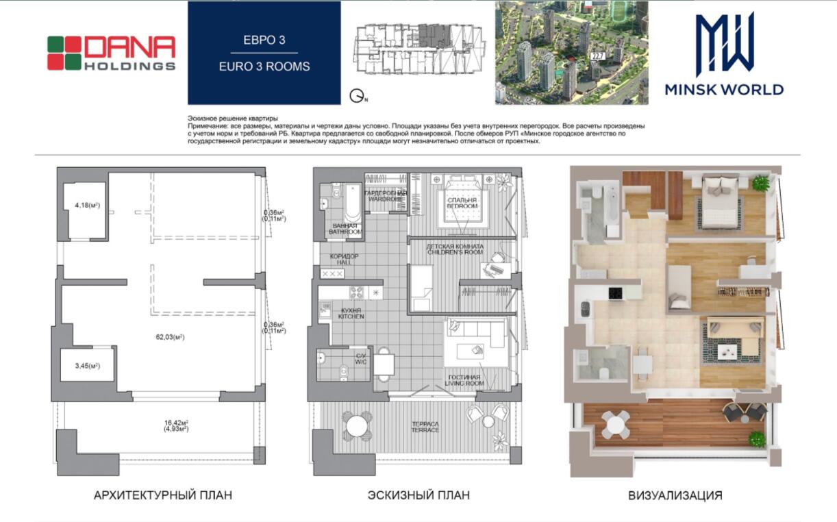 Квартира свободной планировки в строящемся доме «София», ЖК «Минск-Мир»