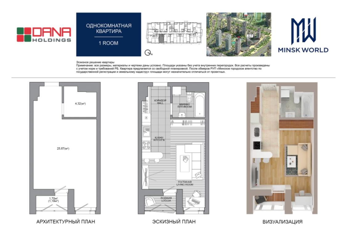 Квартира свободной планировки в строящемся доме «София», ЖК «Минск-Мир»
