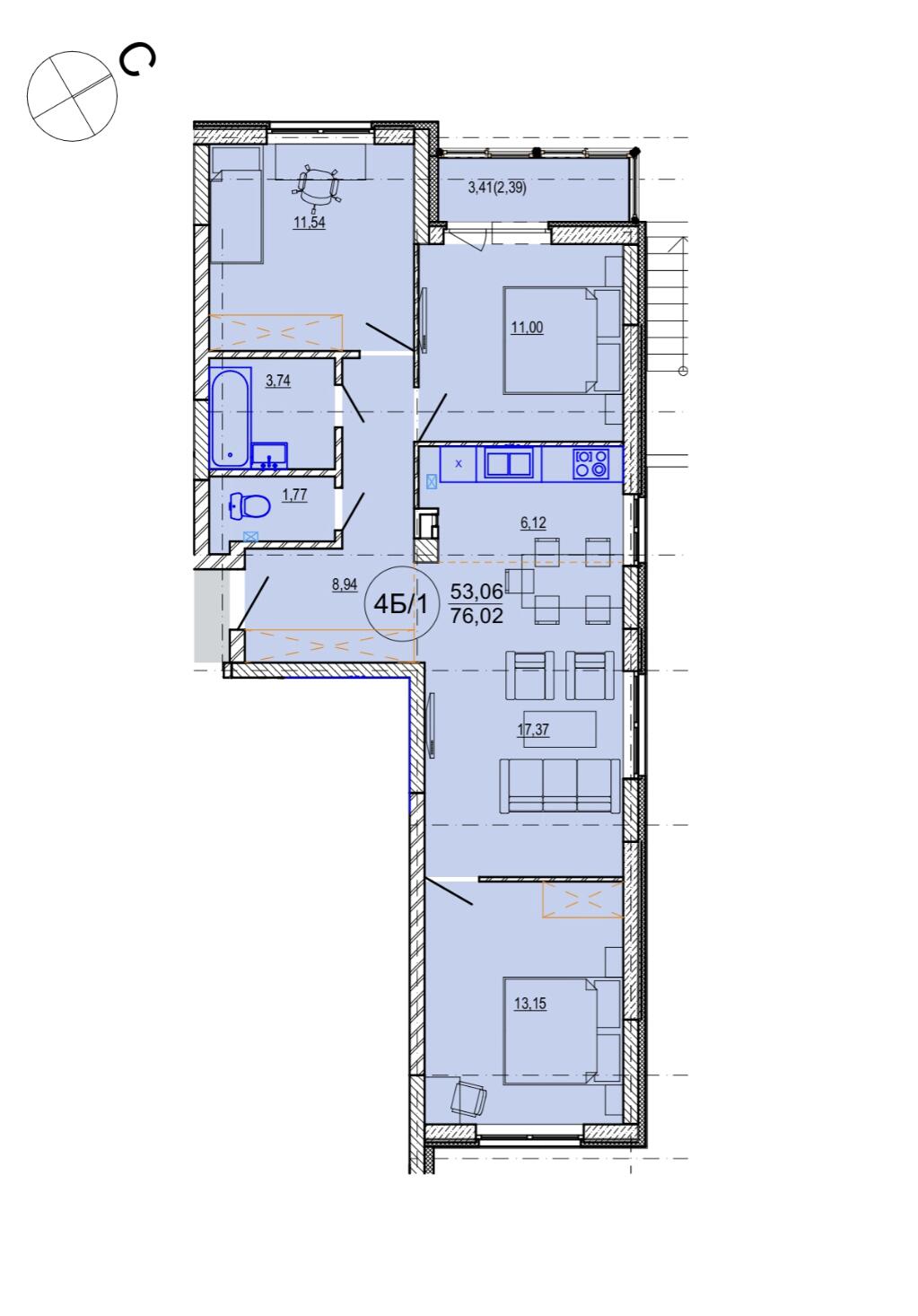 Общая площадь 76.02 м²