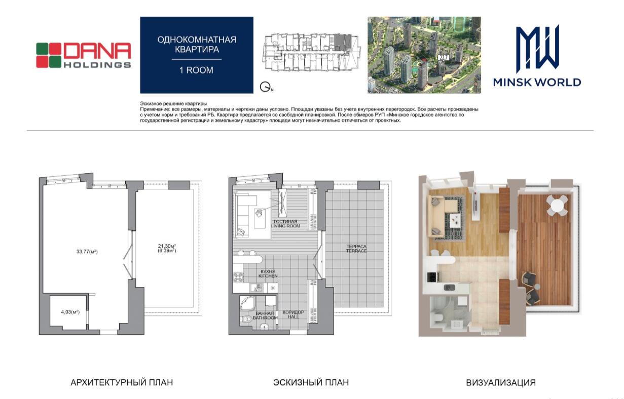 Квартира свободной планировки в строящемся доме «София», ЖК «Минск-Мир»