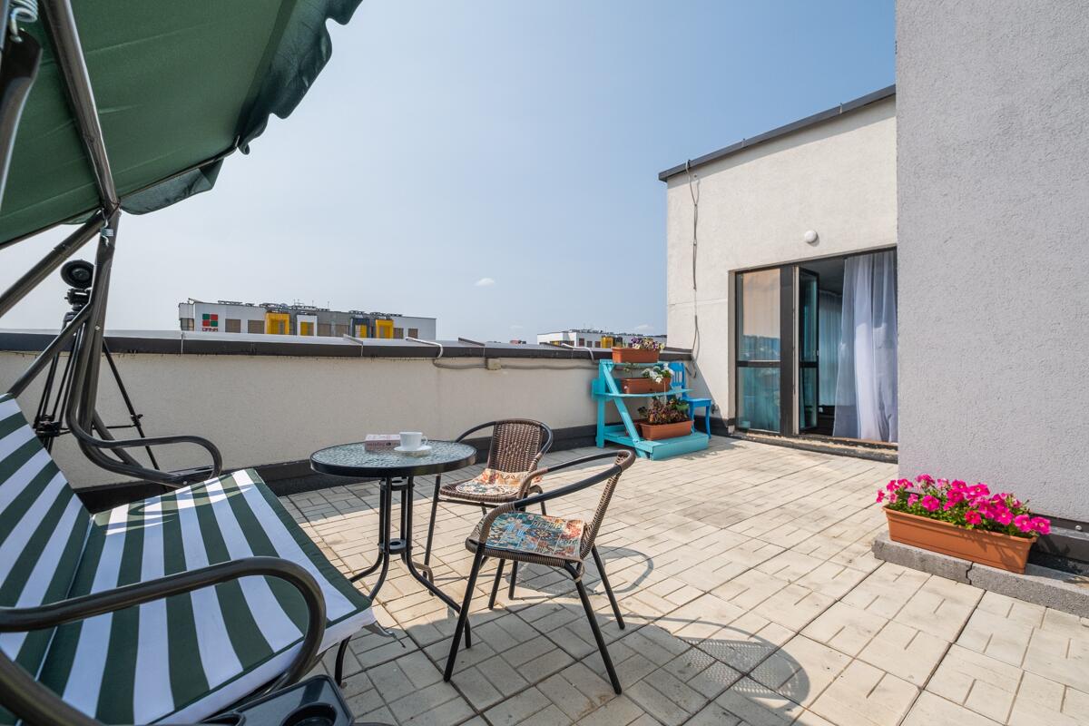 • Отдельный санузел и огромная терраса почти 40 м2 — ваш личный сад в небе, где можно наслаждаться кофе на рассвете или ужином под звёздами