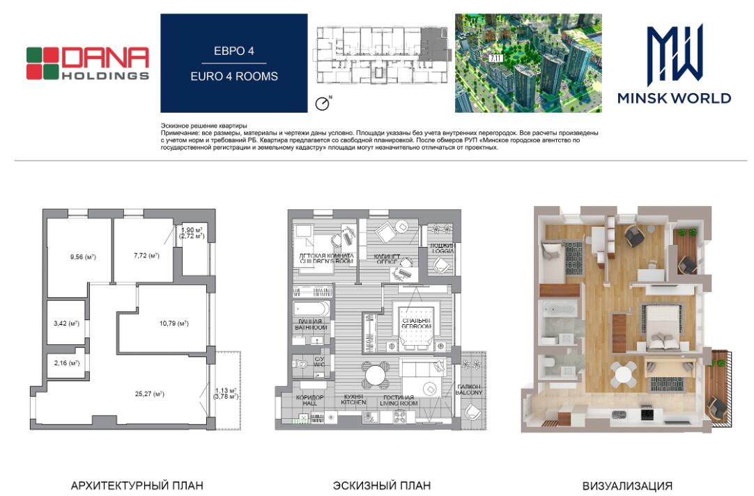 Квартира свободной планировки в гдоме «Валетта», ЖК «Минск-Мир»