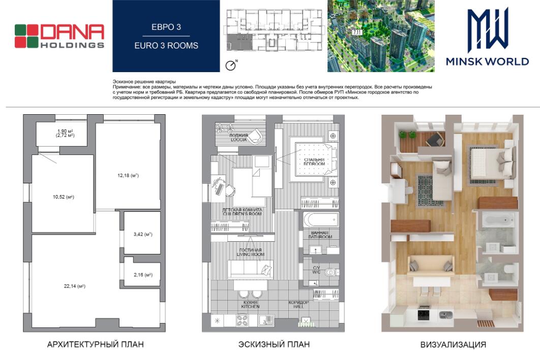 Квартира свободной планировки в гдоме «Валетта», ЖК «Минск-Мир»