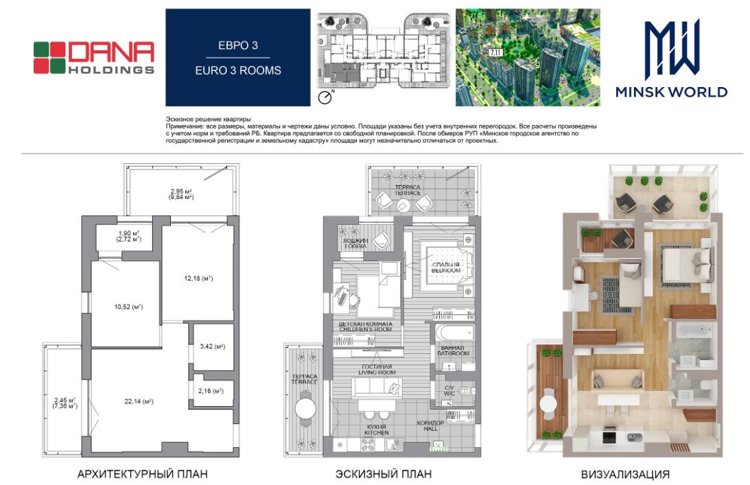Квартира свободной планировки в гдоме «Валетта», ЖК «Минск-Мир»