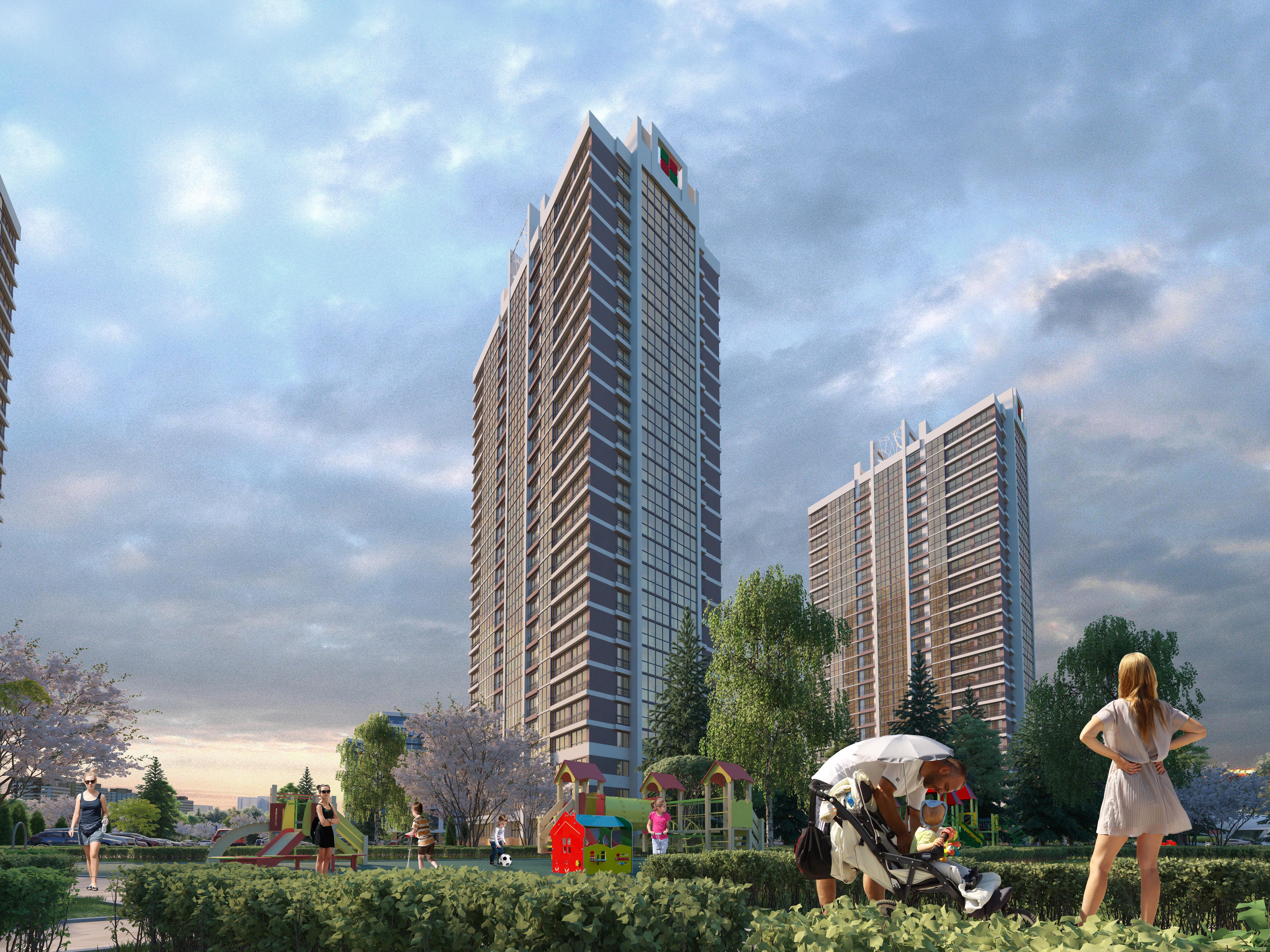 · внутри квартала - детские площадки для разных возрастов детей, в пешей доступности будет вся собственная инфраструктура Minsk World – взрослая и детская поликлиника, медицинский центр, кафе и магазины, парковки и заправки, спортивные залы и фитнес-центры