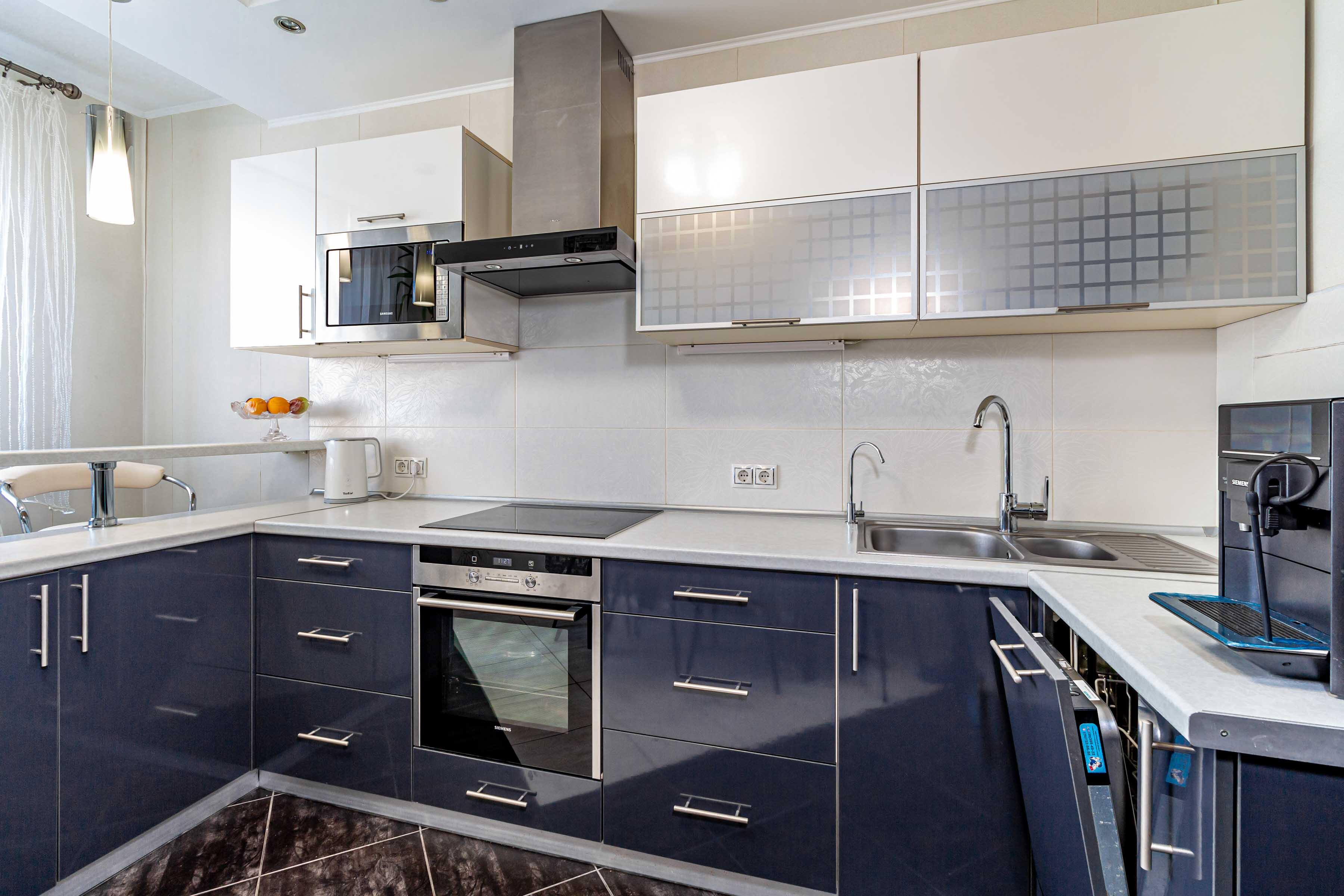 Установлены хорошие механизмы Blum на всех шкафчиках и шуфлядках, все с доводчиками. Встроенная бытовая техника - варочная, духовой шкаф и посудомоечная машина Siemens, микроволновка Samsung, вытяжка Akpo (Польша).