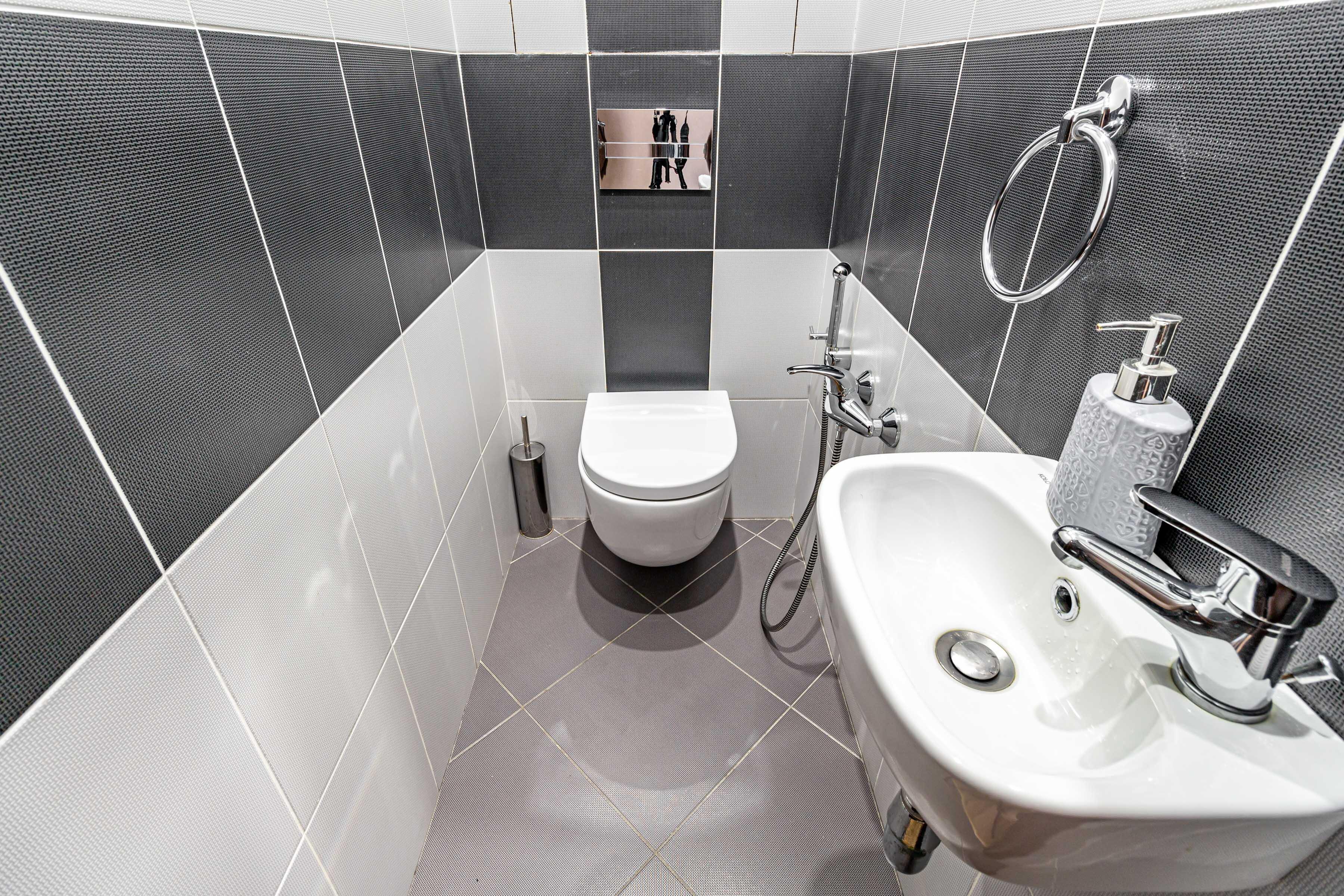 Сантехника в туалете установлена испанская (унитаз и инсталяция Roca), польская (краны).