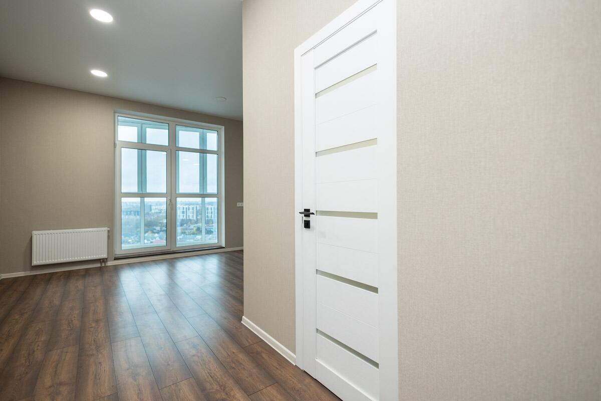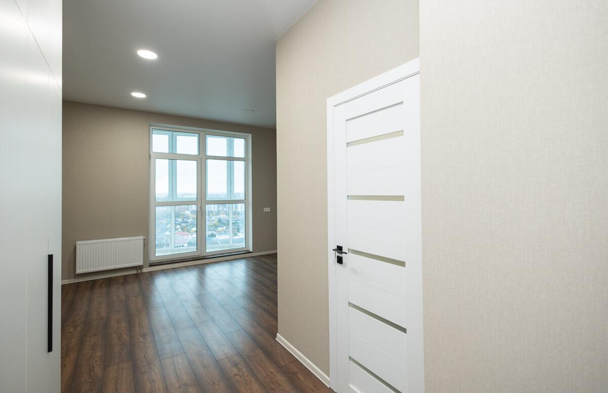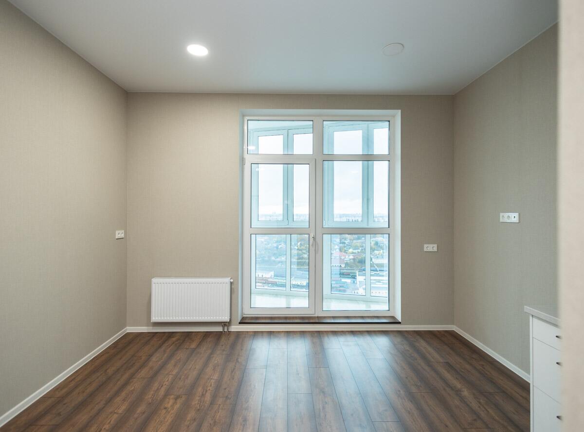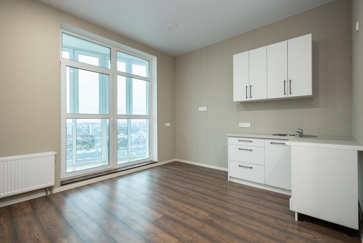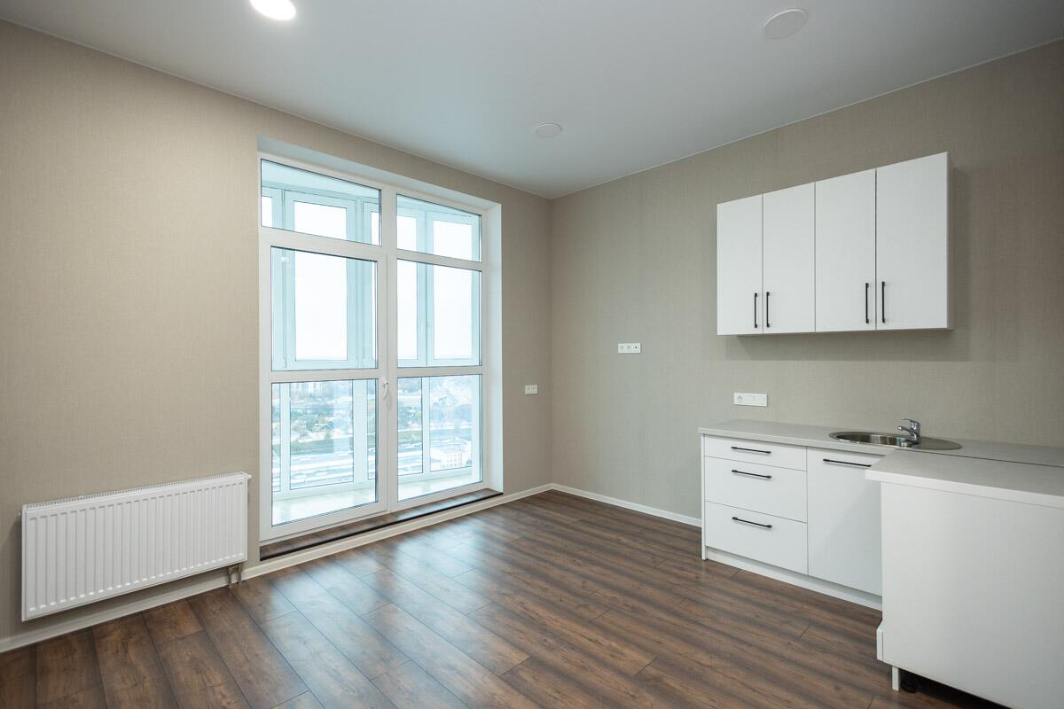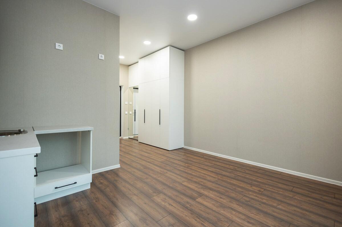 Особенностью и одновременно уникальностью этой квартиры на 25 этаже являются 3-х метровые потолки, которые добавляют больше света в пространстве этой студии.