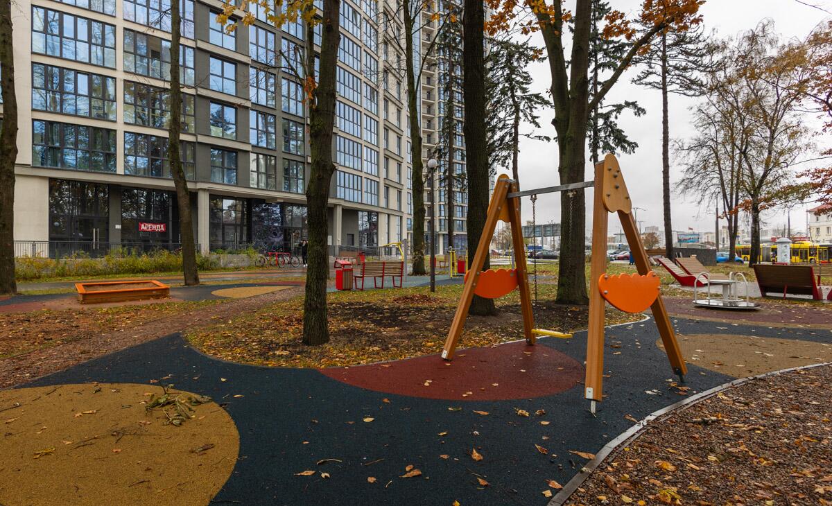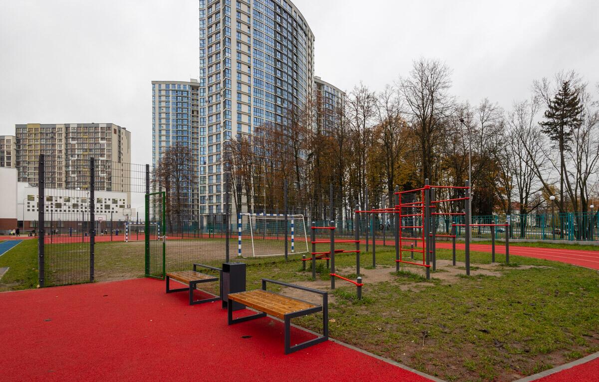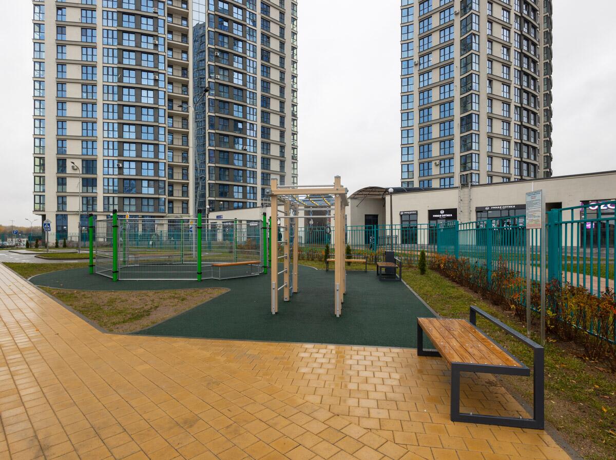 Во дворе школа, бассейн, открытый паркинг и конечно, парковая зона для прогулок и активного отдыха.