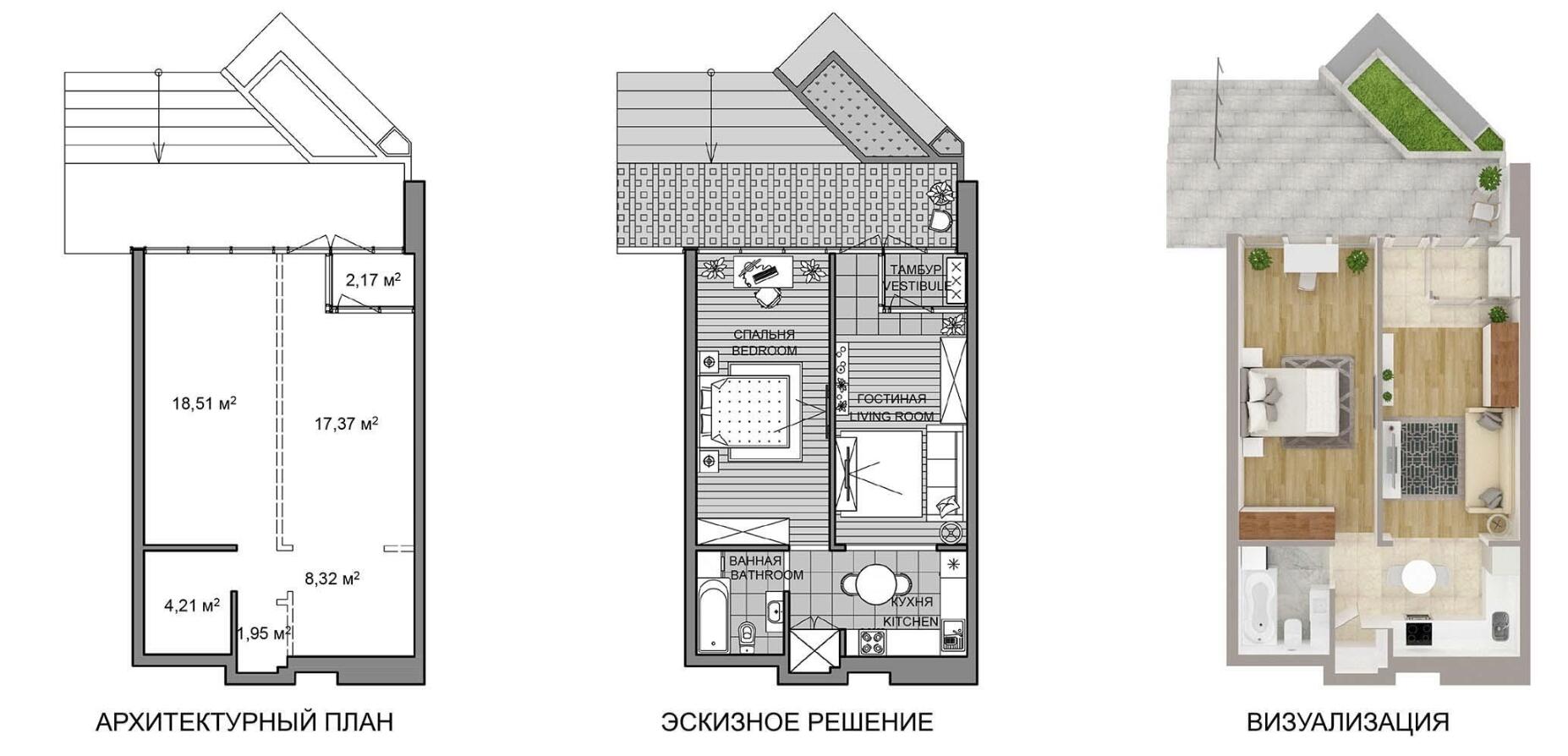Жилая площадь 34 м²