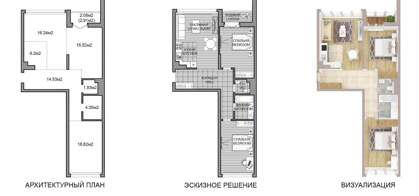 Жилая площадь 62 м²