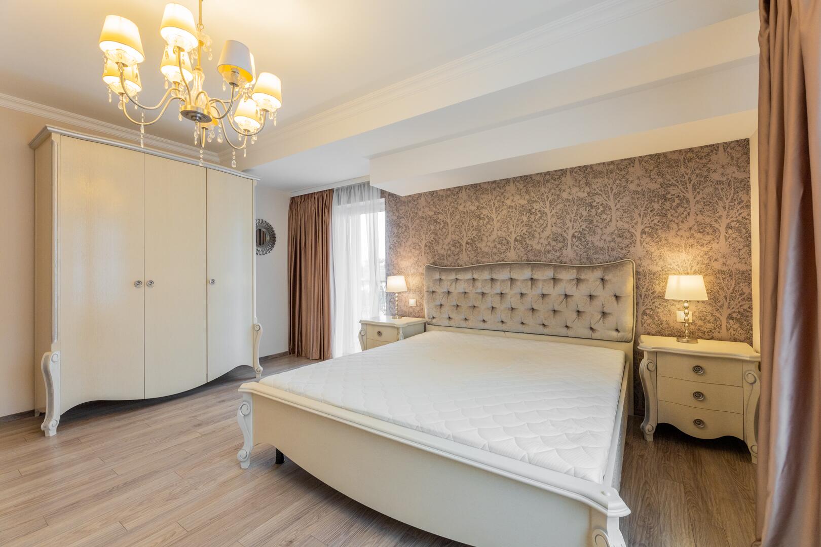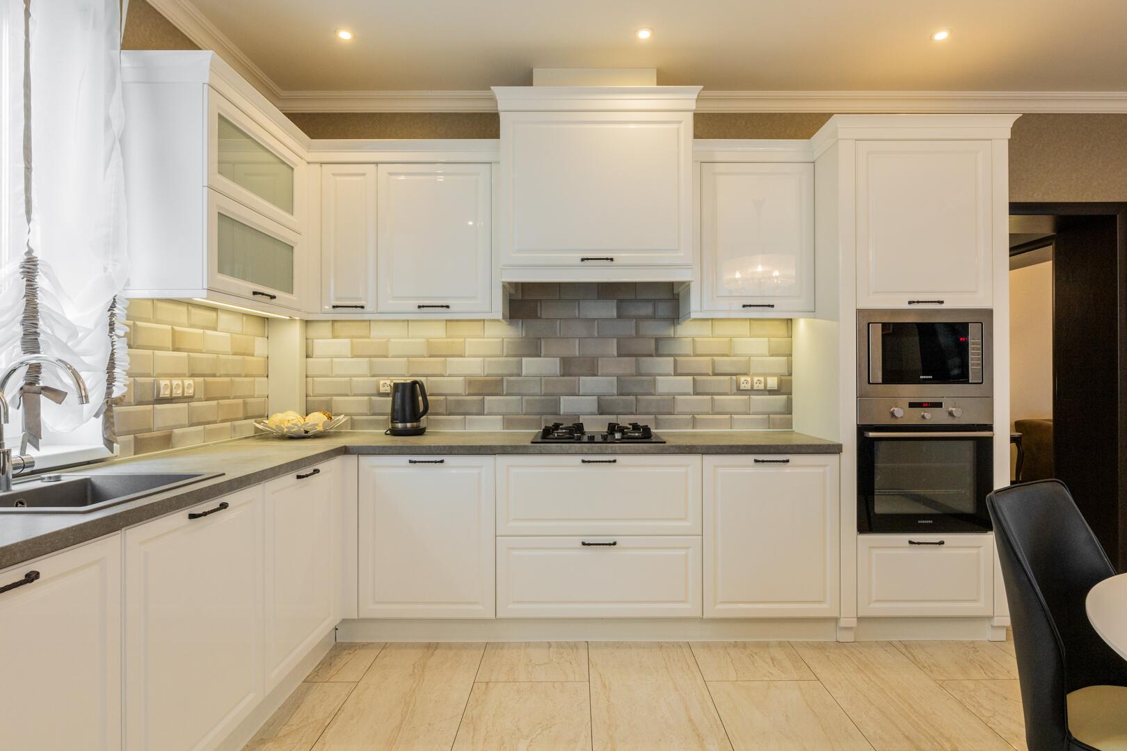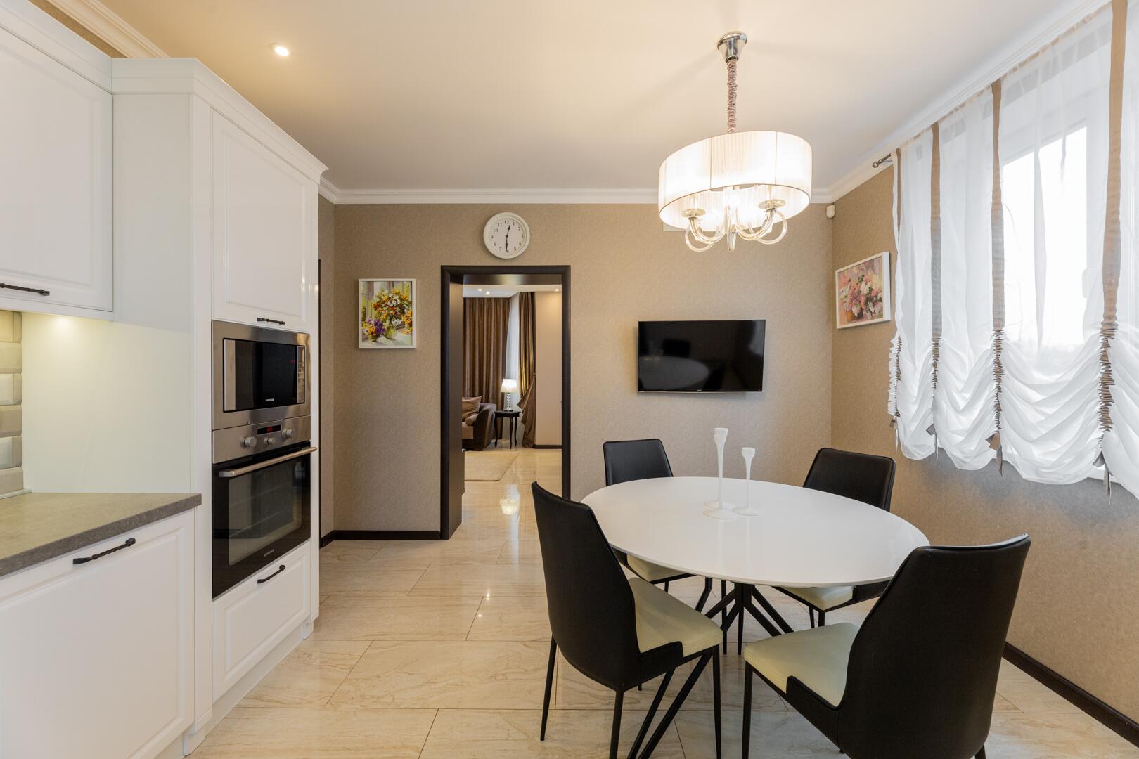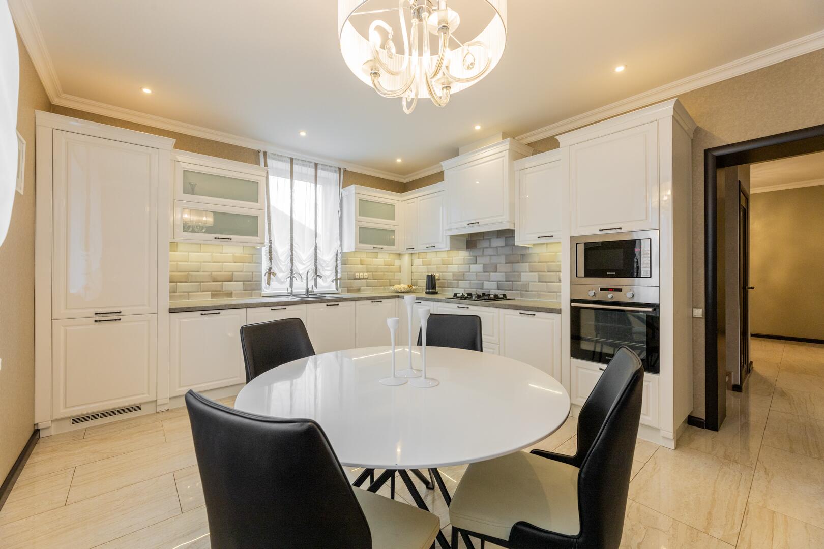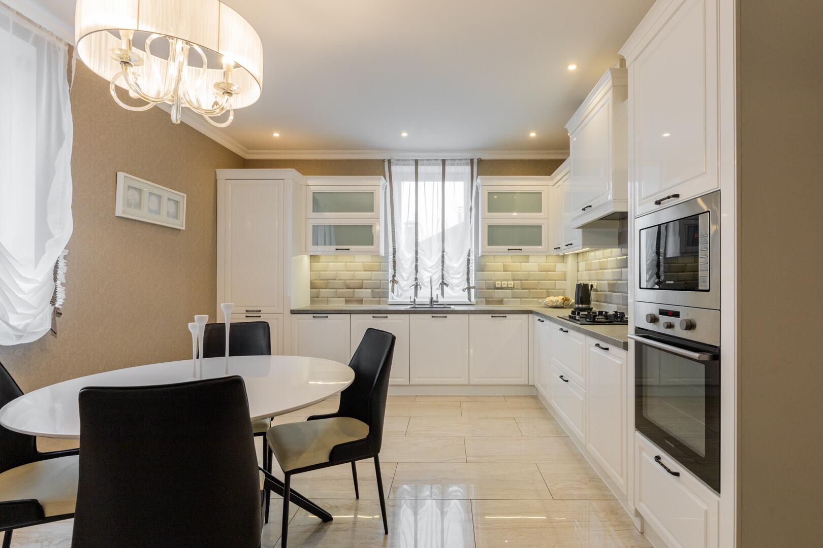 · Большая кухня с техникой (остается встроенная техника: варочная панель, духовка, посудомойка, холодильник), кухня выполнена из массива дуба полностью каркас и фасады;