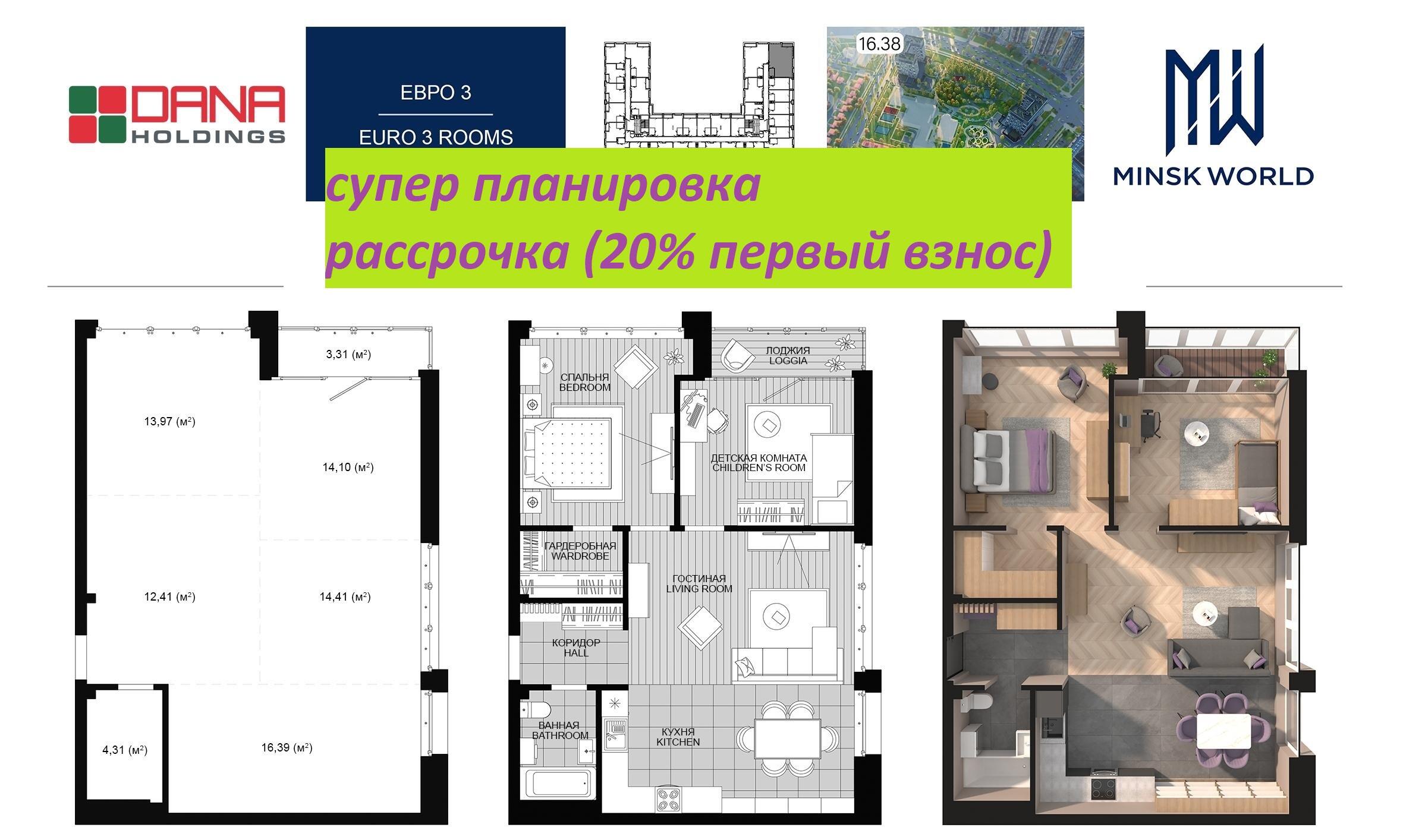 СКидка! Рассрочка от 20%. Предложе Все квартиры в ЖК Минск мир. Звоните.