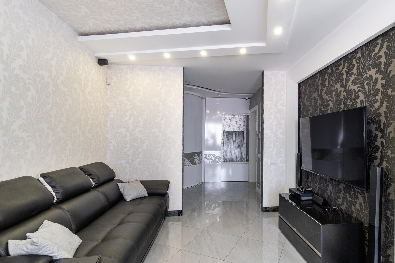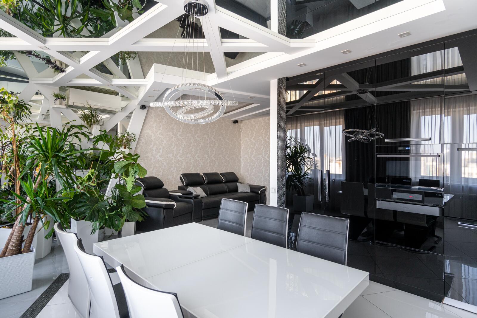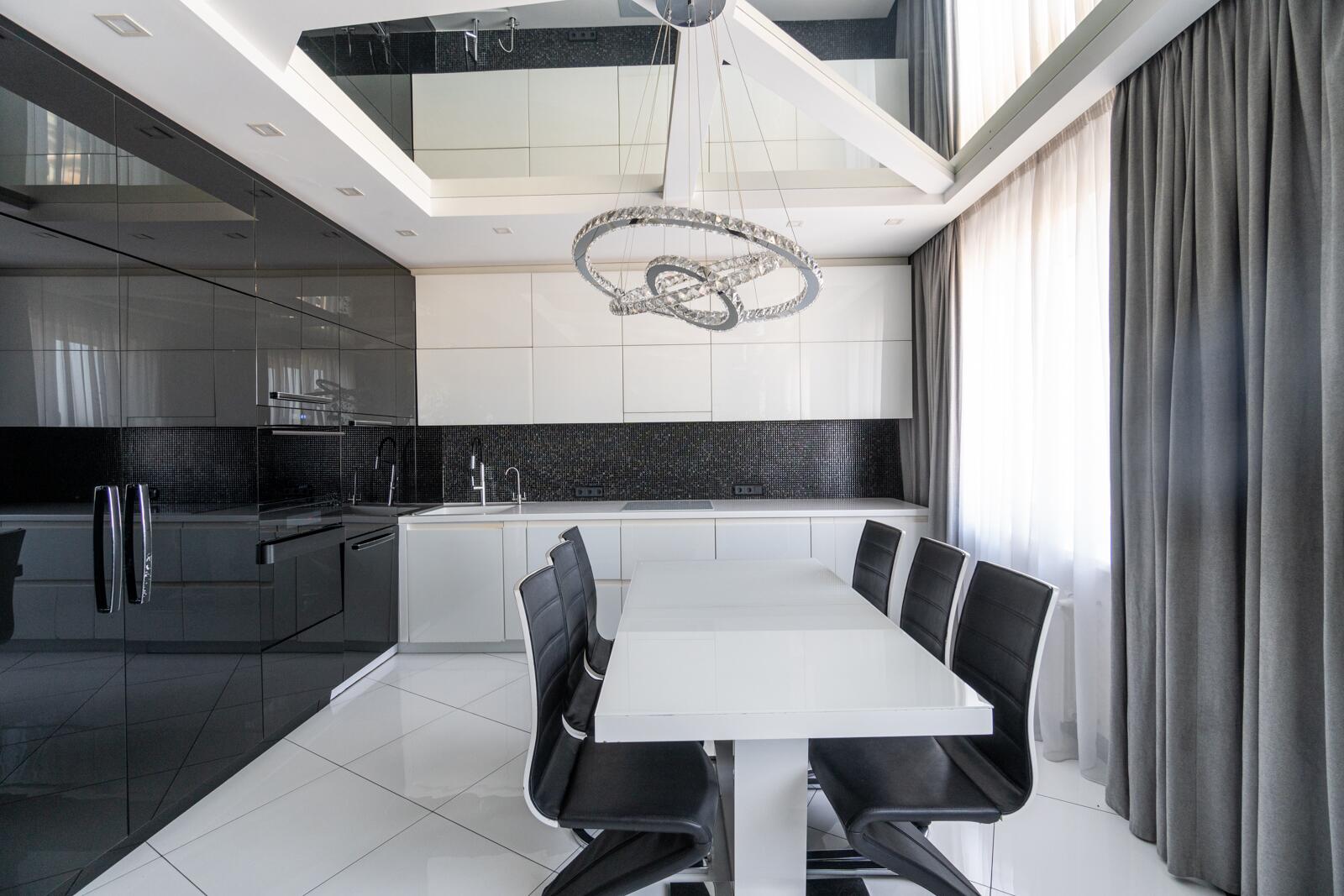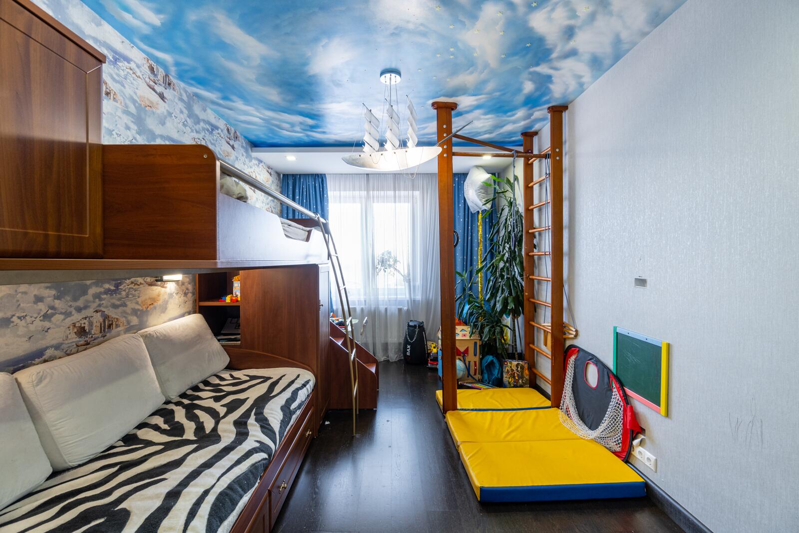 Две изолированные спальни и просторная кухня-гостиная. Хозяйская спальня — с выходом на лоджию и отдельной гардеробной. В детской — продуманное рабочее место у окна и несколько сценариев освещения для комфортного времяпрепровождения. В гостиной и в основной спальне — кондиционеры Mitsubishi Electric.Кухня-гостинаяСтоловая зона на 6 человек с возможностью комфортно разместить до 12 гостей. Кухня на фурнитуре Blum; техника Liebherr / Gorenje / Samsung; холодильник Side-by-Side, посудомоечная машина, измельчитель пищевых отходов, система водоочистки. Акустическая система установлена — фильмы и музыка звучат насыщенно и мягко. Тёплый пол.