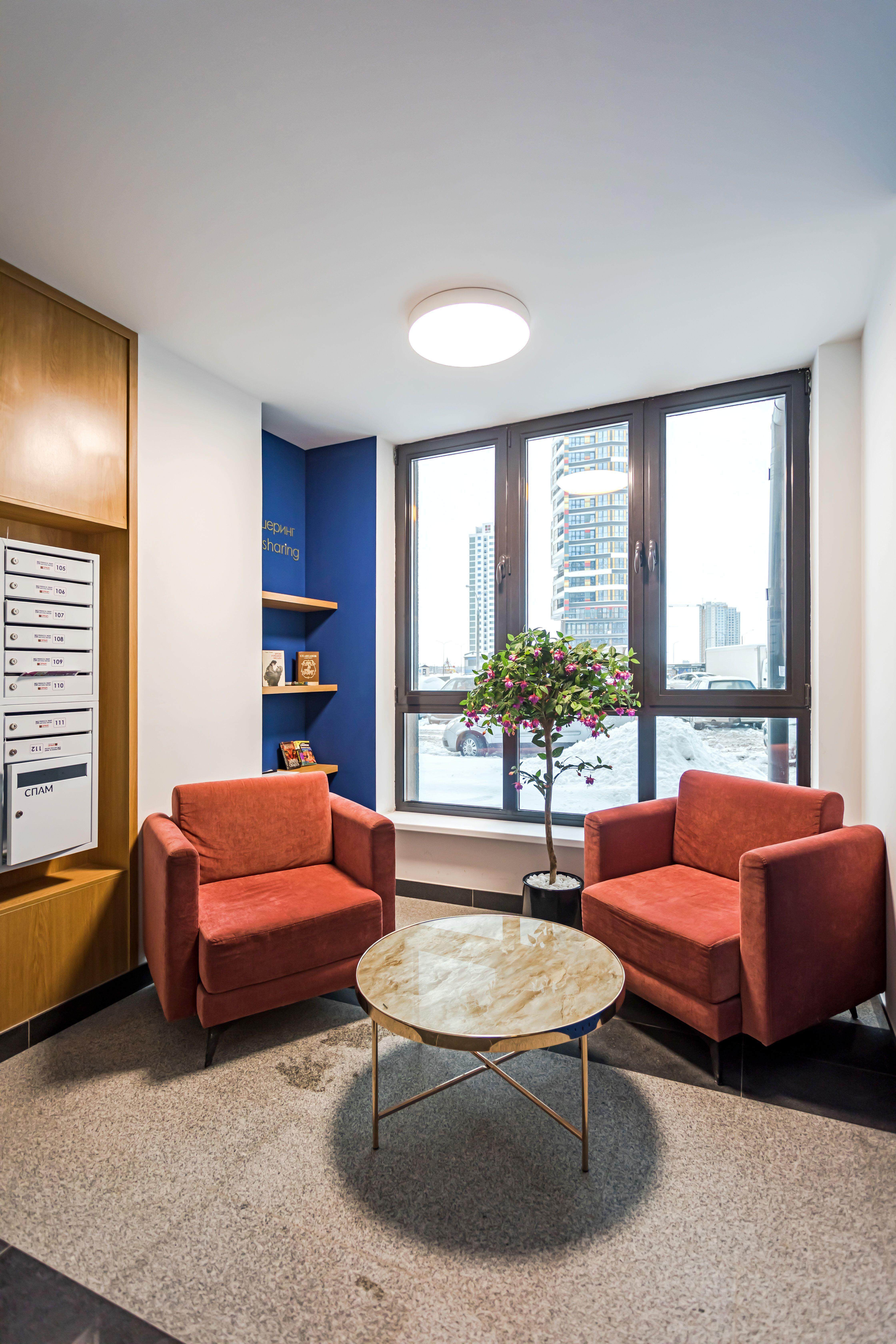 · Дизайнерские лобби с местом для консьержа, зоной отдыха, санитарной комнатой с пеленальным столиком и местом для мытья лап животных.