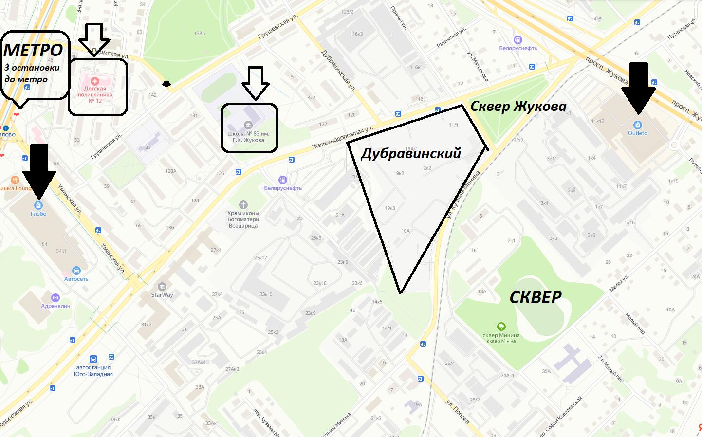 · Поблизости сквер сквер им. Минина, сквер им. Г.К.Жукова, школа, поликлиника, торговые центры, несколько остановок до Минск Мира.