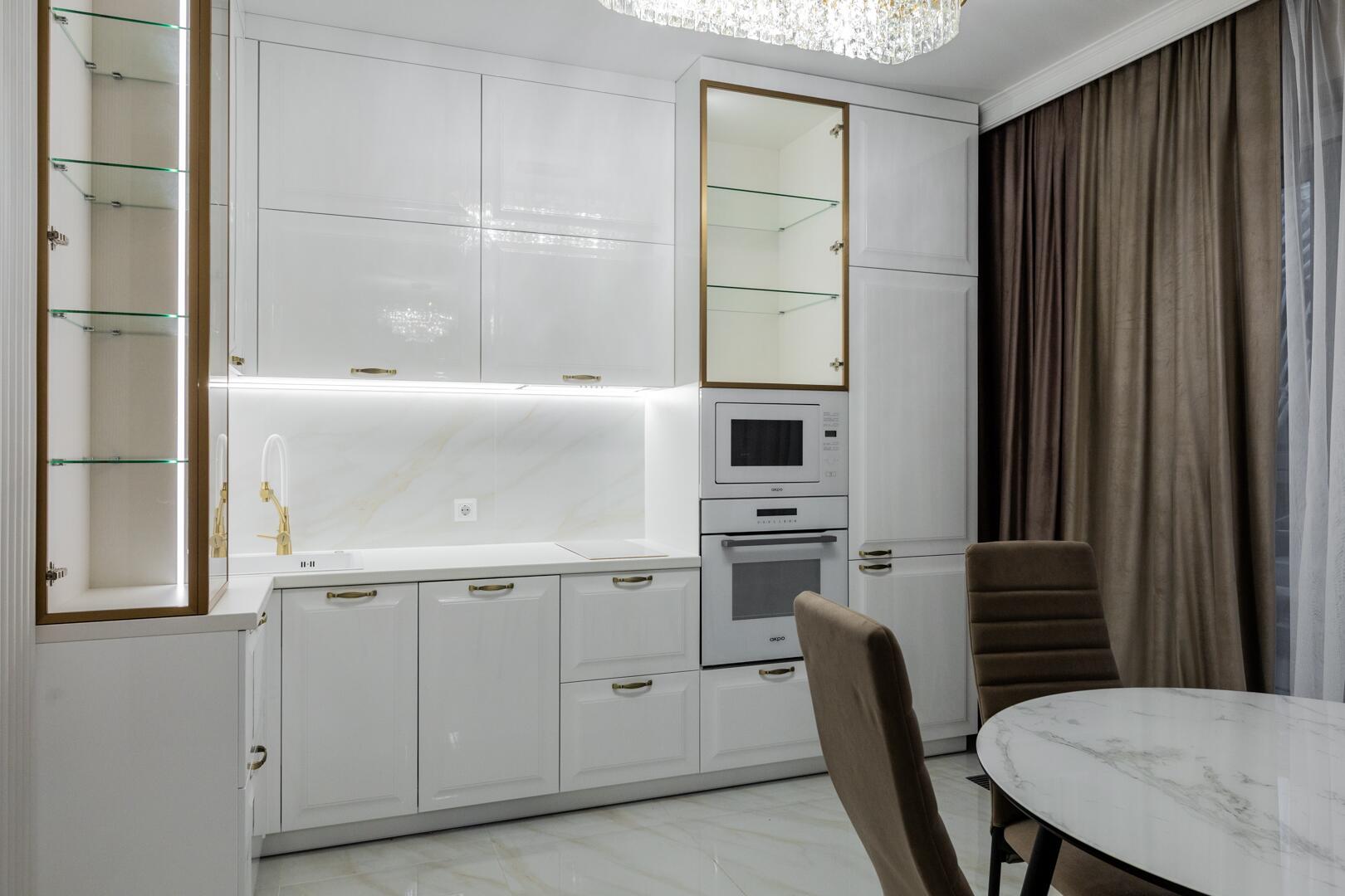 Общая площадь квартиры по СНБ – 46,5 м2. Дизайнерский ремонт с использованием высококачественных материалов. Стены отдекорированы лепниной из гипса – настоящее украшение квартиры! Малярные работы выполнены на высочайшем уровне Квартира укомплектована мебелью и бытовой техникой от ведущих мировых производителей, что гарантирует долговечность и удобство эксплуатации Продуманная и функциональная кухня оборудована посудомоечной машиной, духовым шкафом, варочной поверхностью, встроенным холодильником и СВЧ. Подсветка рабочей зоны и удобная обеденная группа Освещение – дизайнерские люстры из хрусталя В квартире раздельный санузел. Сантехника премиальных брендов Напольное покрытие - керамогранит Застеклённая лоджия – идеальное место для отдыха, где можно наслаждаться утренним кофе или вечером любоваться панорамным видом. Под лоджией расположен утепленный погреб Отделка класса LUX подчёркивает эксклюзивность и стиль жилья.